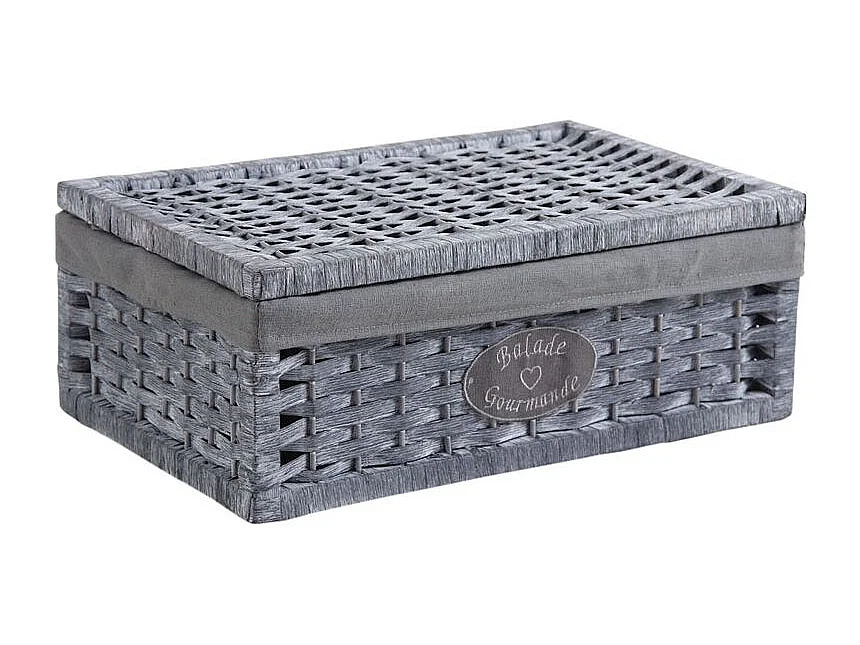 Corbeille de rangement en osier gris et coton 38 x 30 x 20 cm
