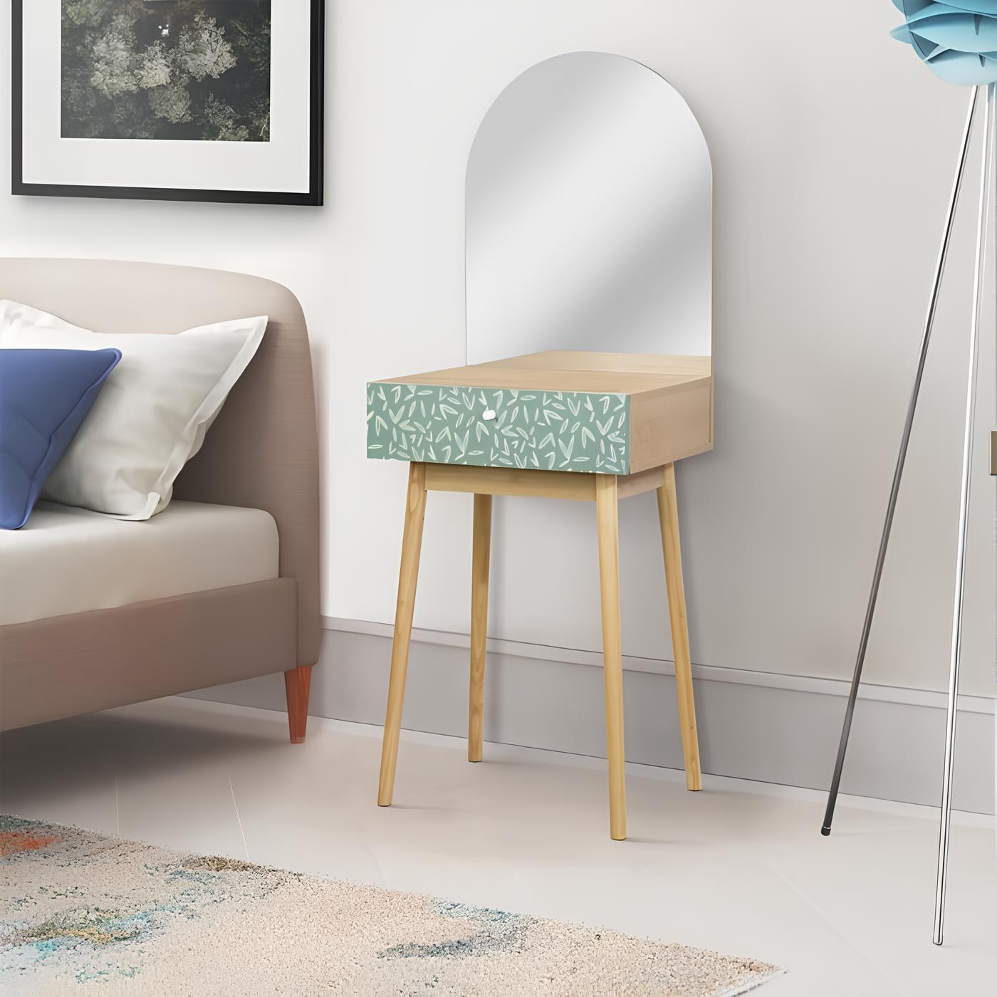 Apportez une touche de fraîcheur et de style à votre chambre avec la coiffeuse GARDENIA, une pièce élégante et fonctionnelle qui allie praticité et design. Avec son décor chêne et vert, elle se distingue par son esthétique naturelle et moderne. Équipée d’un tiroir spacieux et d’un miroir, cette coiffeuse est idéale pour organiser vos produits de beauté et accessoires, tout en ajoutant une note de charme à votre espace. Les pieds en bois massif apportent une stabilité supplémentaire et un charme authentique.
