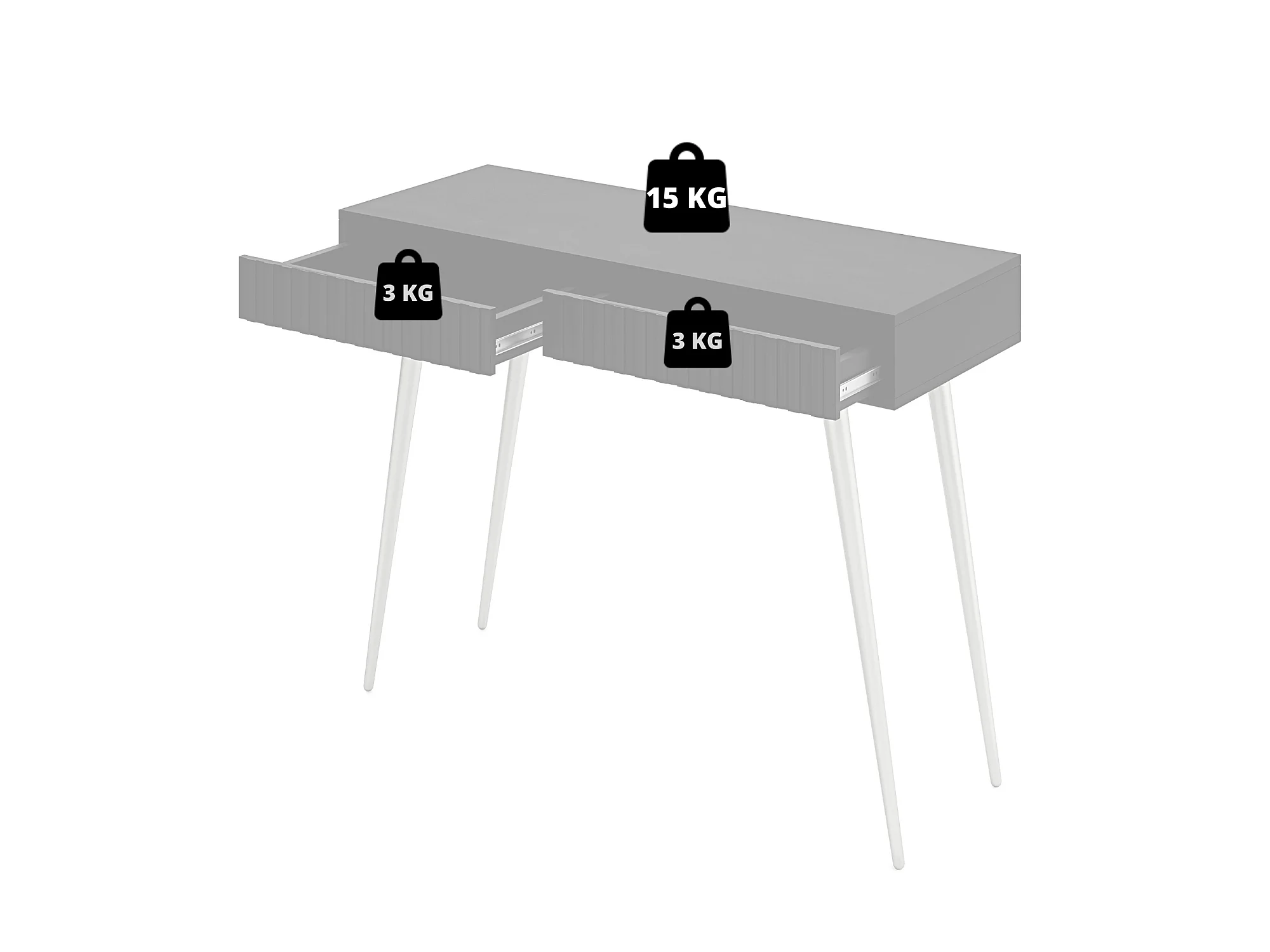 Coiffeuse avec 2 tiroirs et façades laminées - 110 cm - noir avec pattes noires - ZOVA