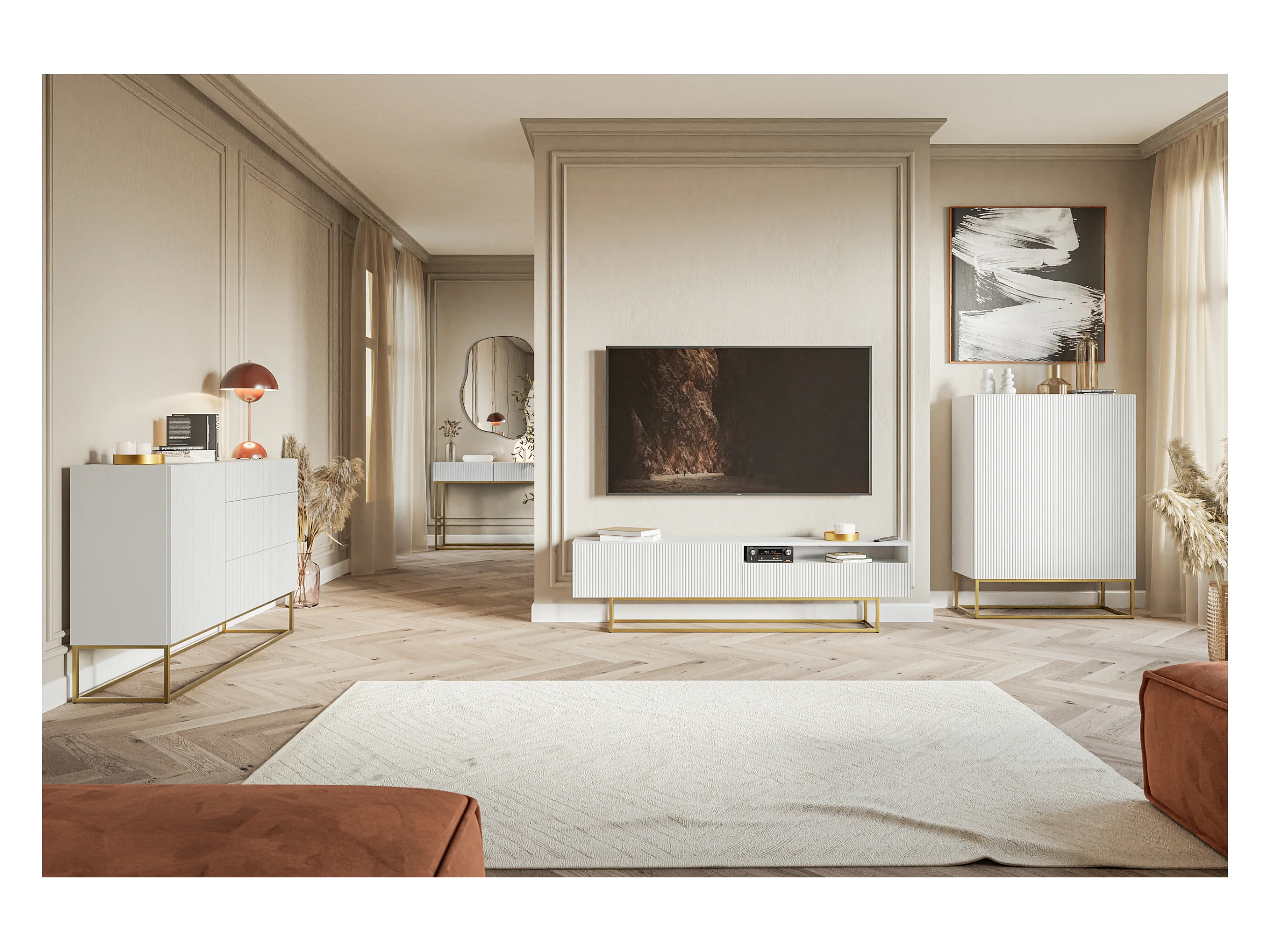 Coiffeuse - 110 cm - blanc avec pieds dorés - VELDIO