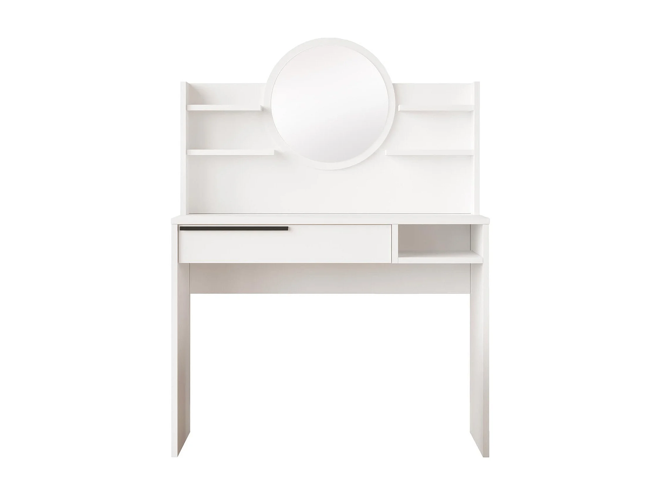 Coiffeuse à tiroir L100cm avec étagères et miroir rond Onara Blanc