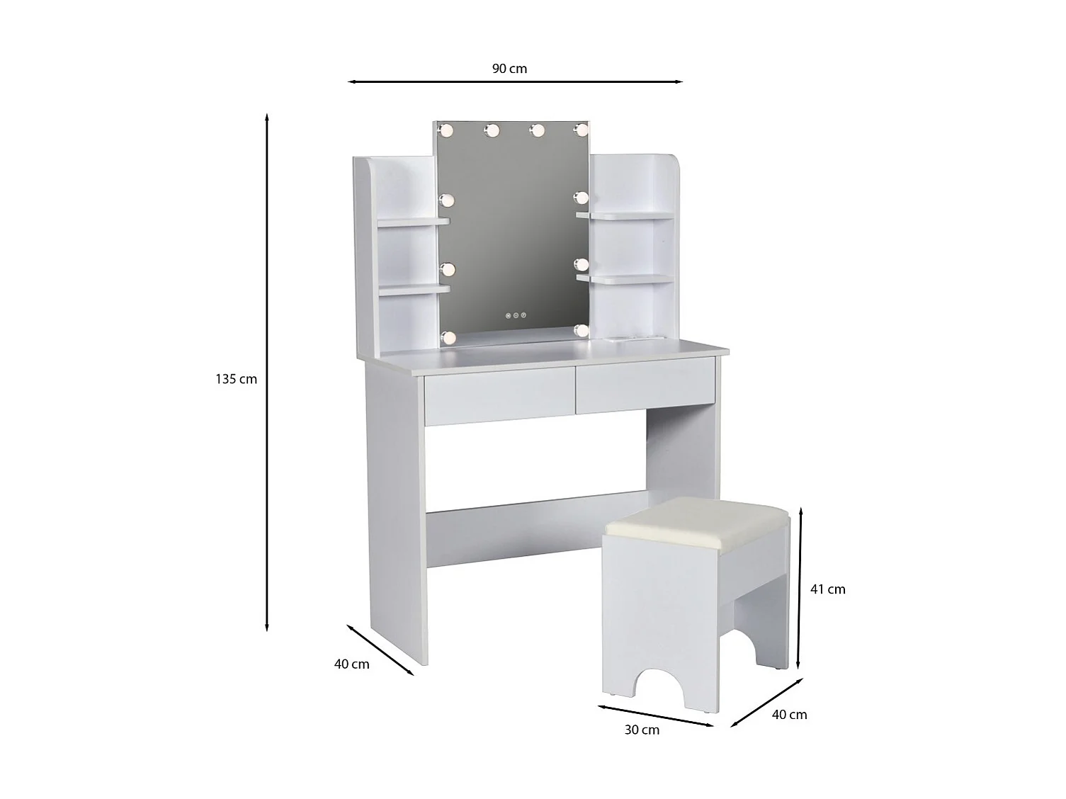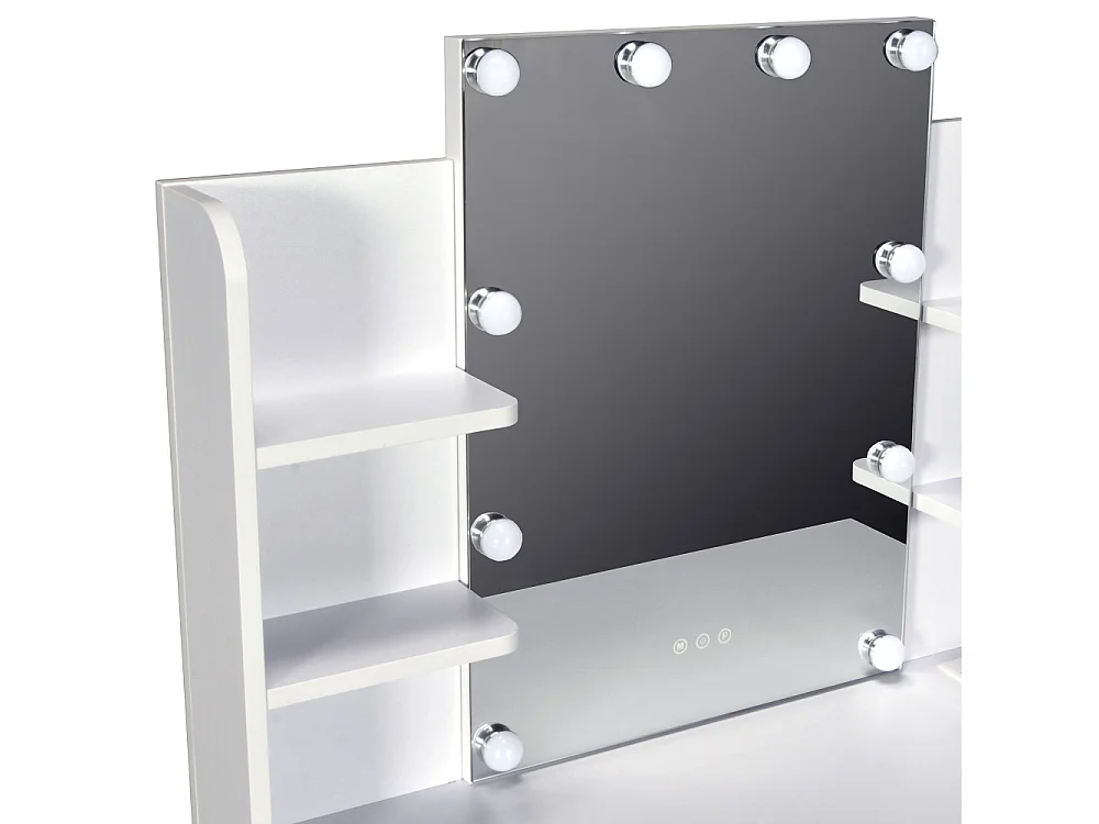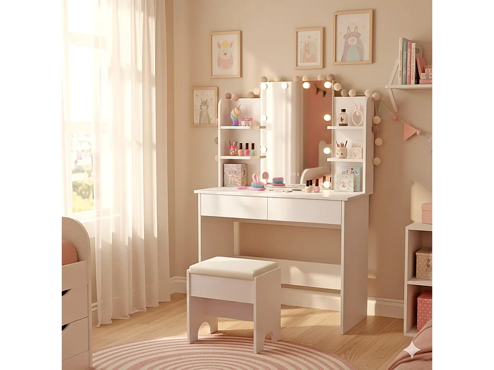 Coiffeuse ALICE avec miroir, éclairage et tabouret / Blanc