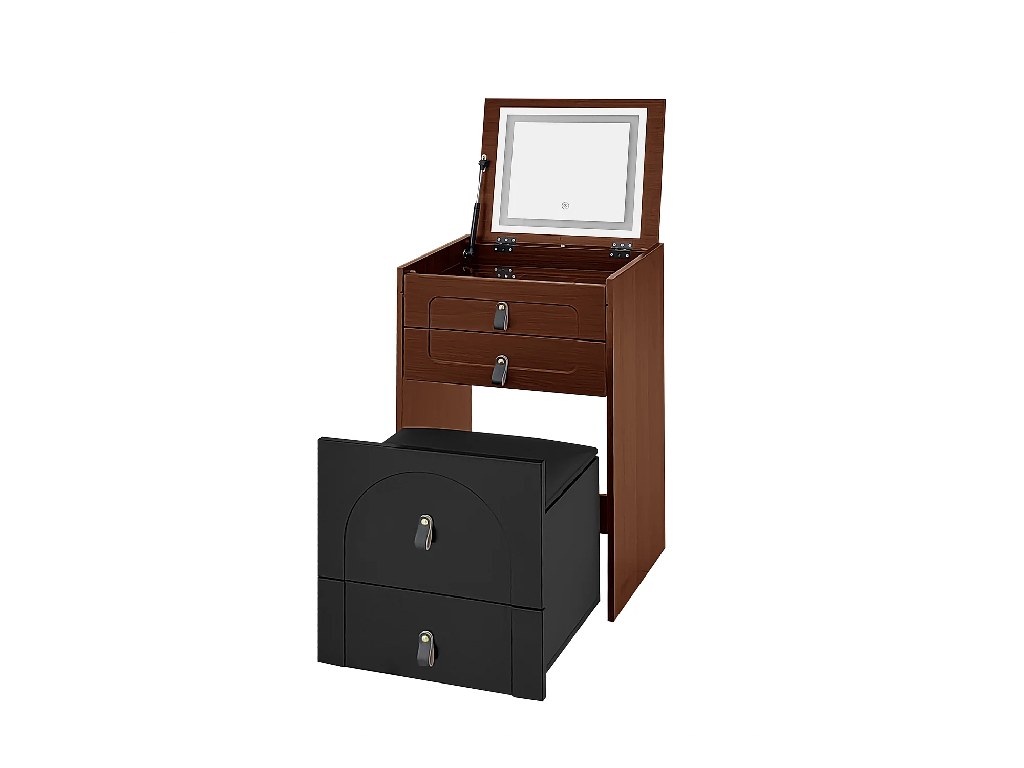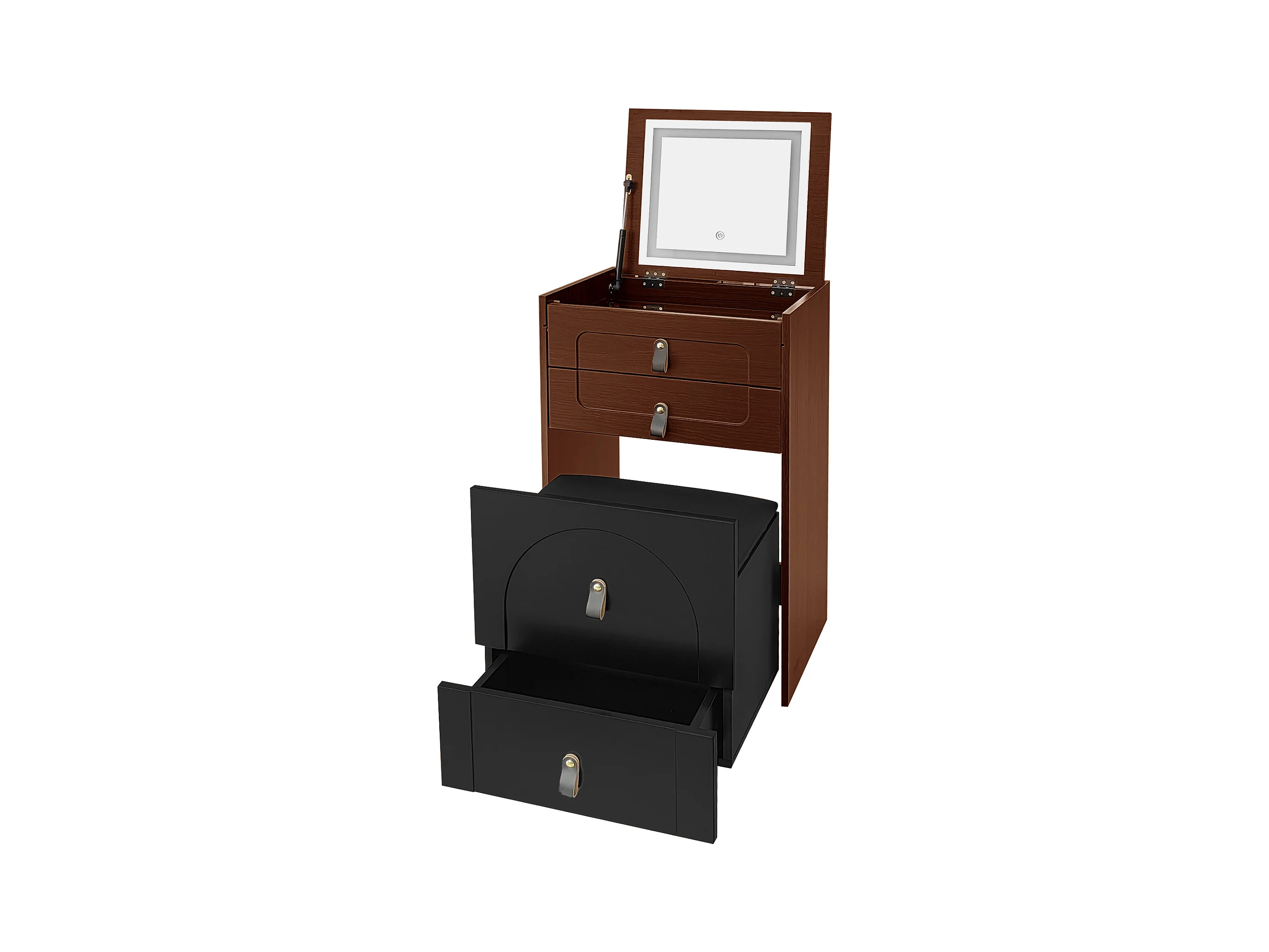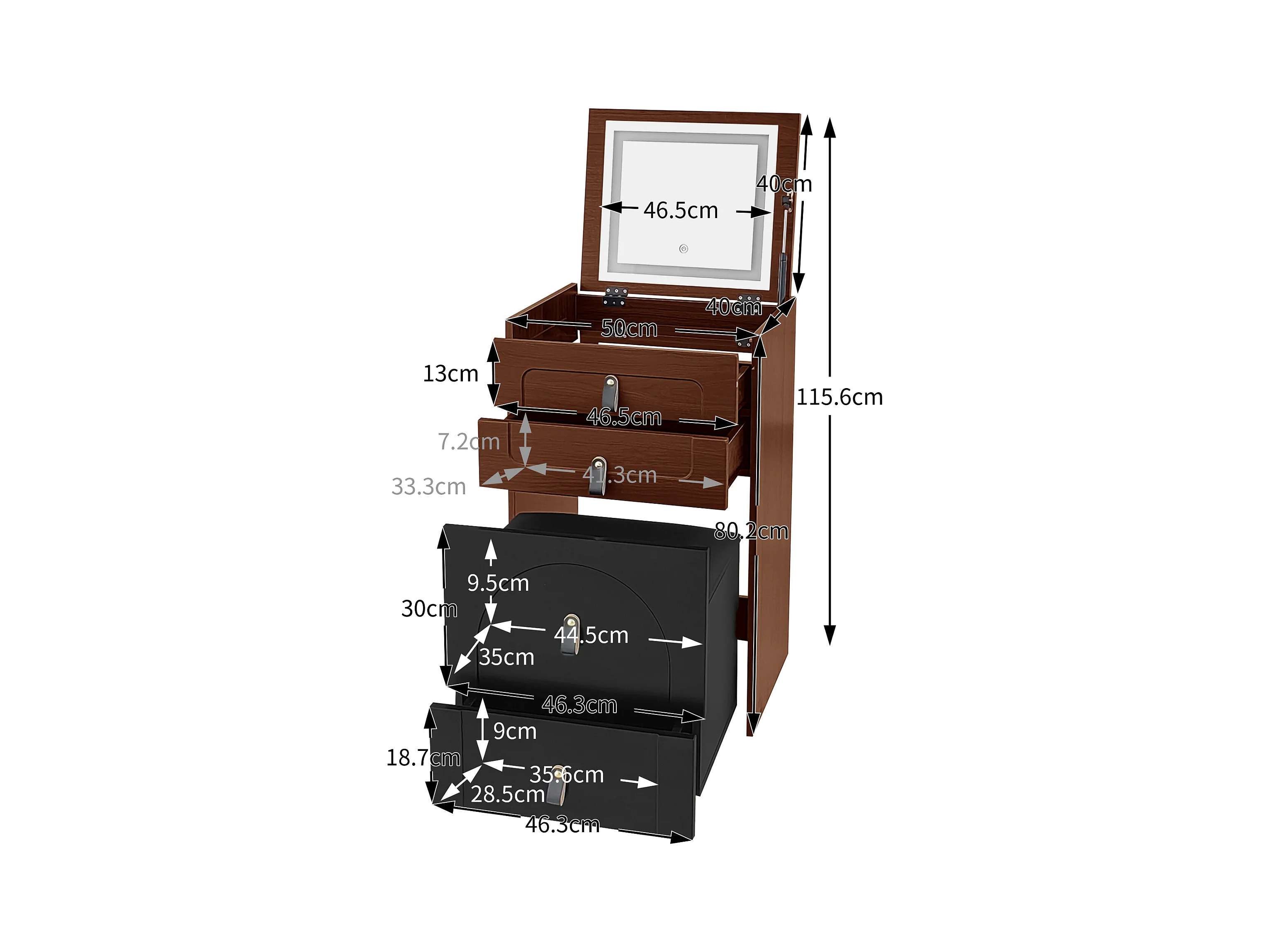 Coiffeuse avec 3 tiroirs, plateau pliable et 1 tabouret - 50 x 40 x 115.6 cm - miroir lumineux LED intégré - Bois MDF - Noir