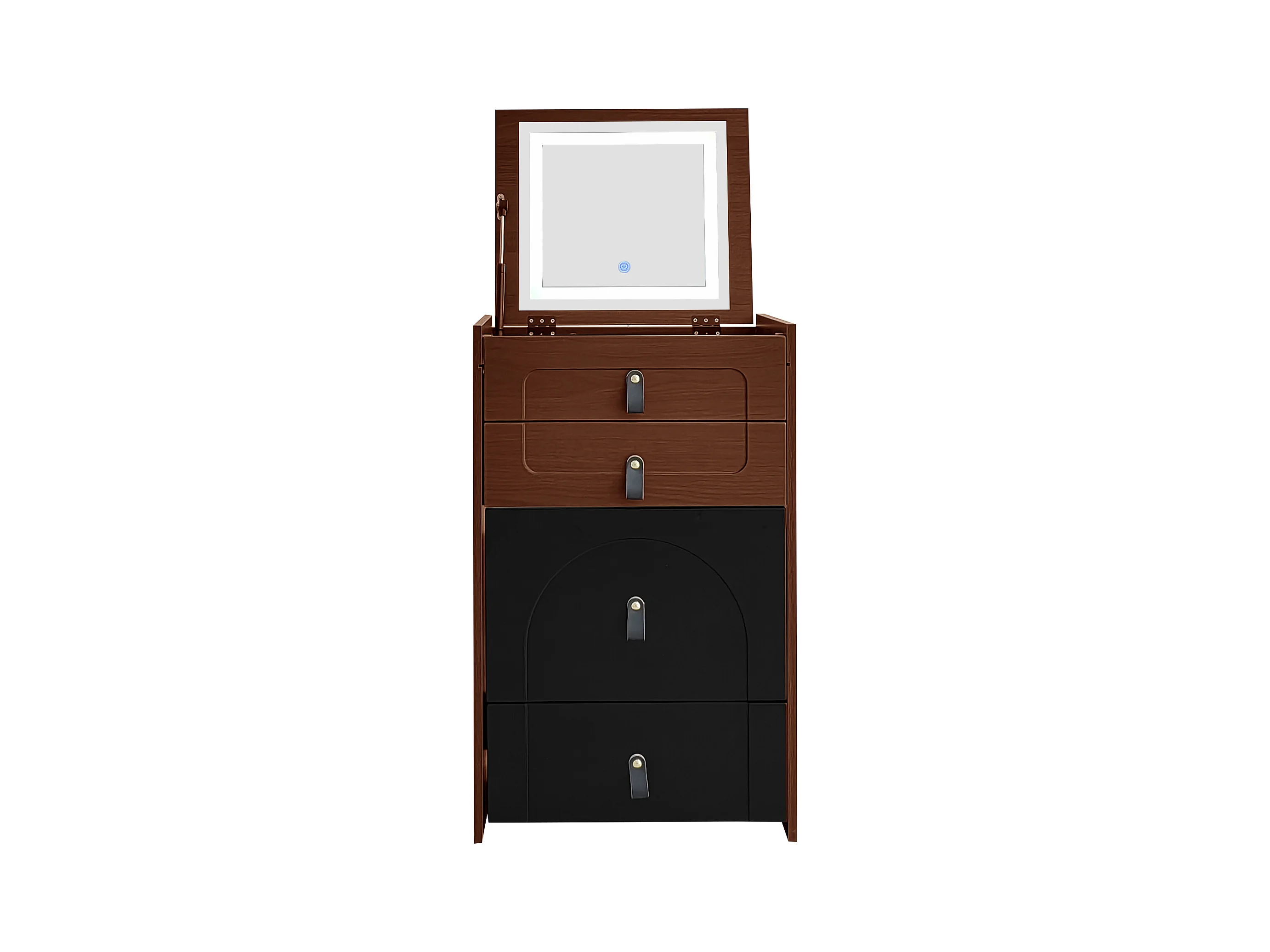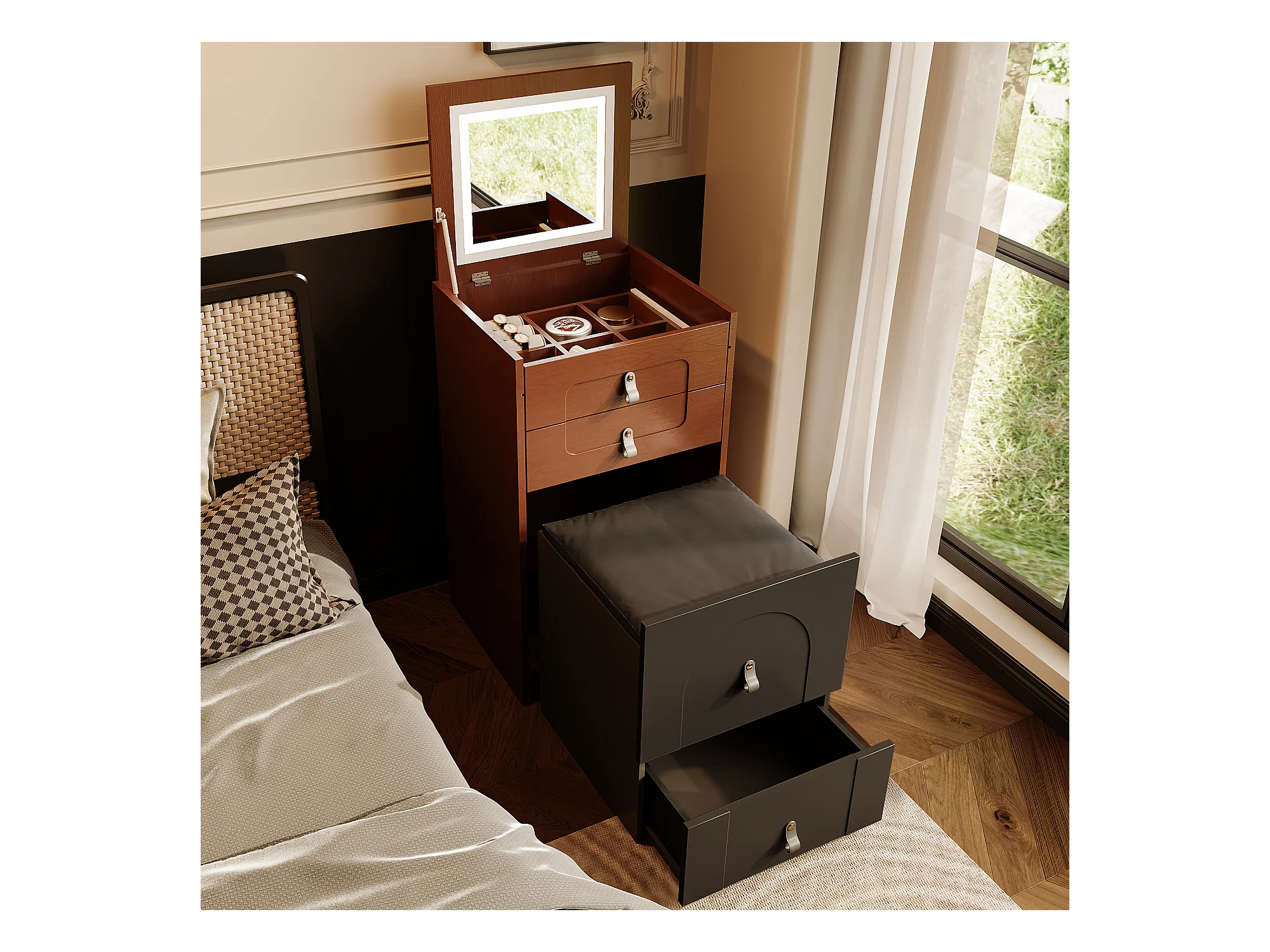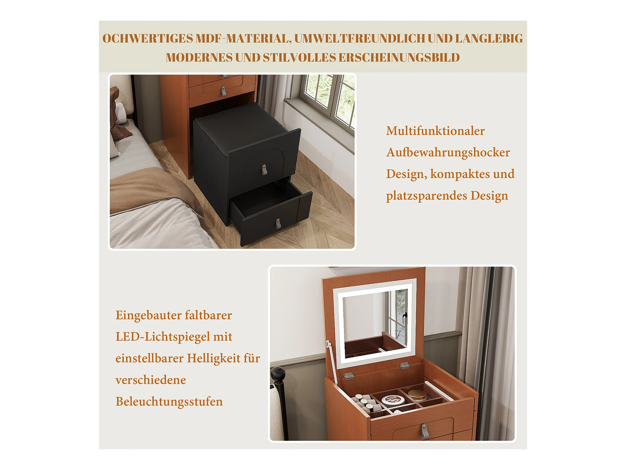 Coiffeuse avec 3 tiroirs, plateau pliable et 1 tabouret - 50 x 40 x 115.6 cm - miroir lumineux LED intégré - Bois MDF - Noir