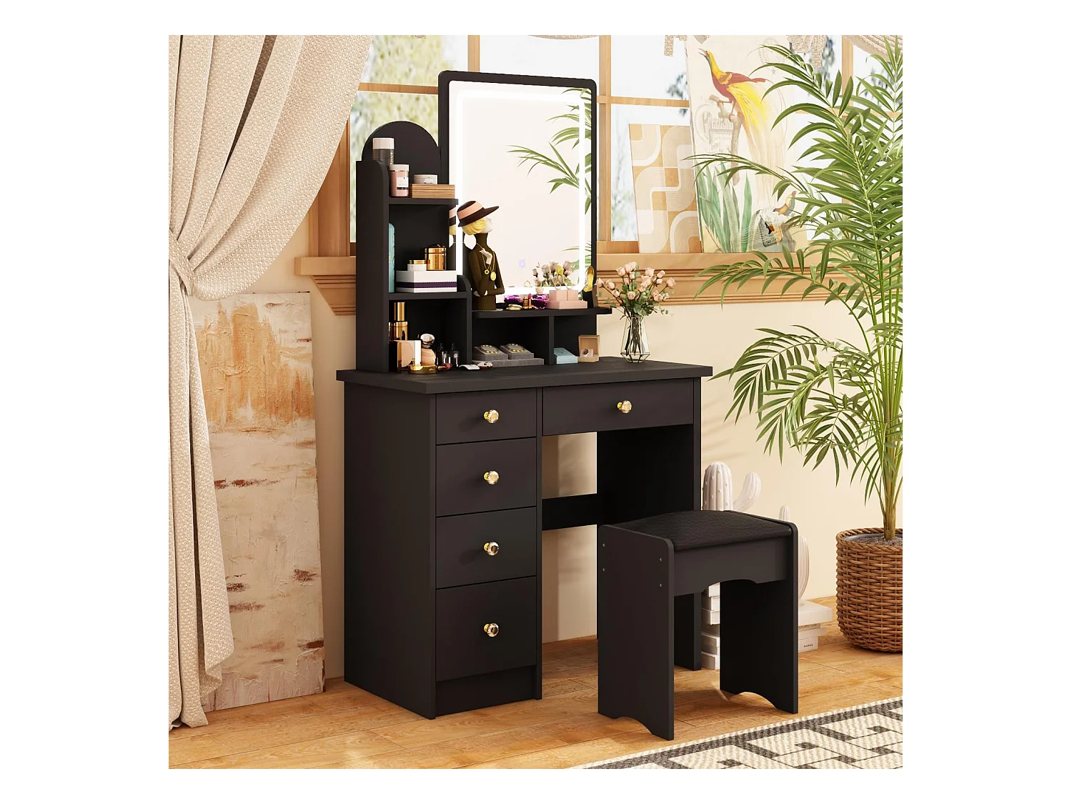 Coiffeuse avec Miroir LED réglable tiroirs Tabouret 80x40x140cm Noir