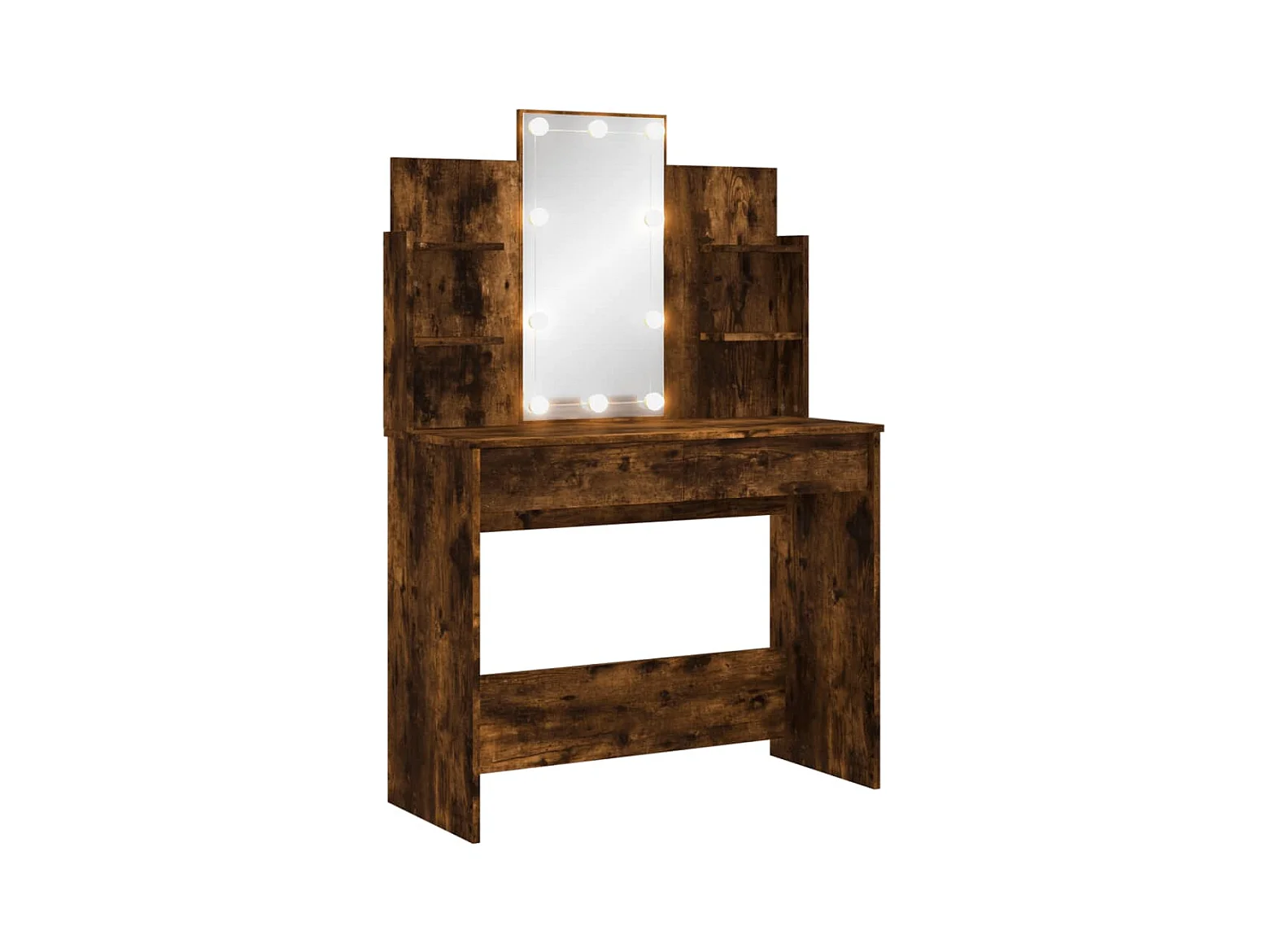 Coiffeuse avec lumières LED chêne fumé 96x40x142