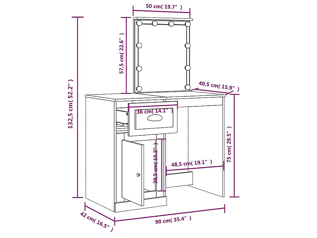 Coiffeuse avec lumières LED chêne marron 90x42x132,5 cm