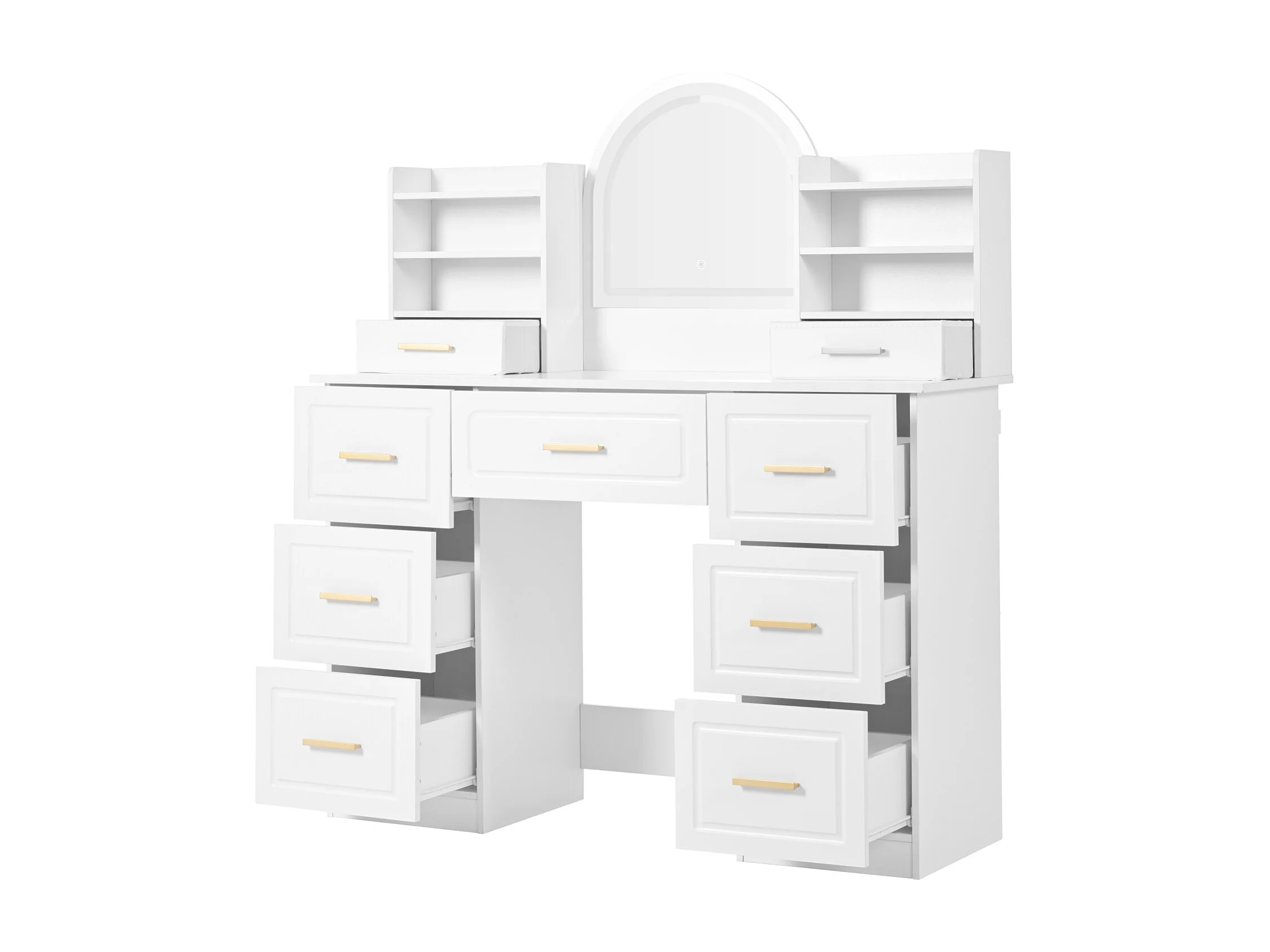 Coiffeuse avec miroir et éclairage LED - table de toilette à 9 tiroirs - 120 x 40 x 135 cm