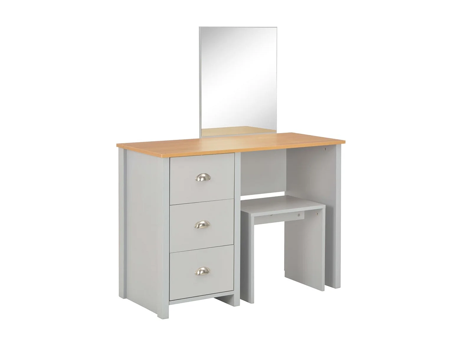 Coiffeuse avec miroir et tabouret Gris 104 x 45x131