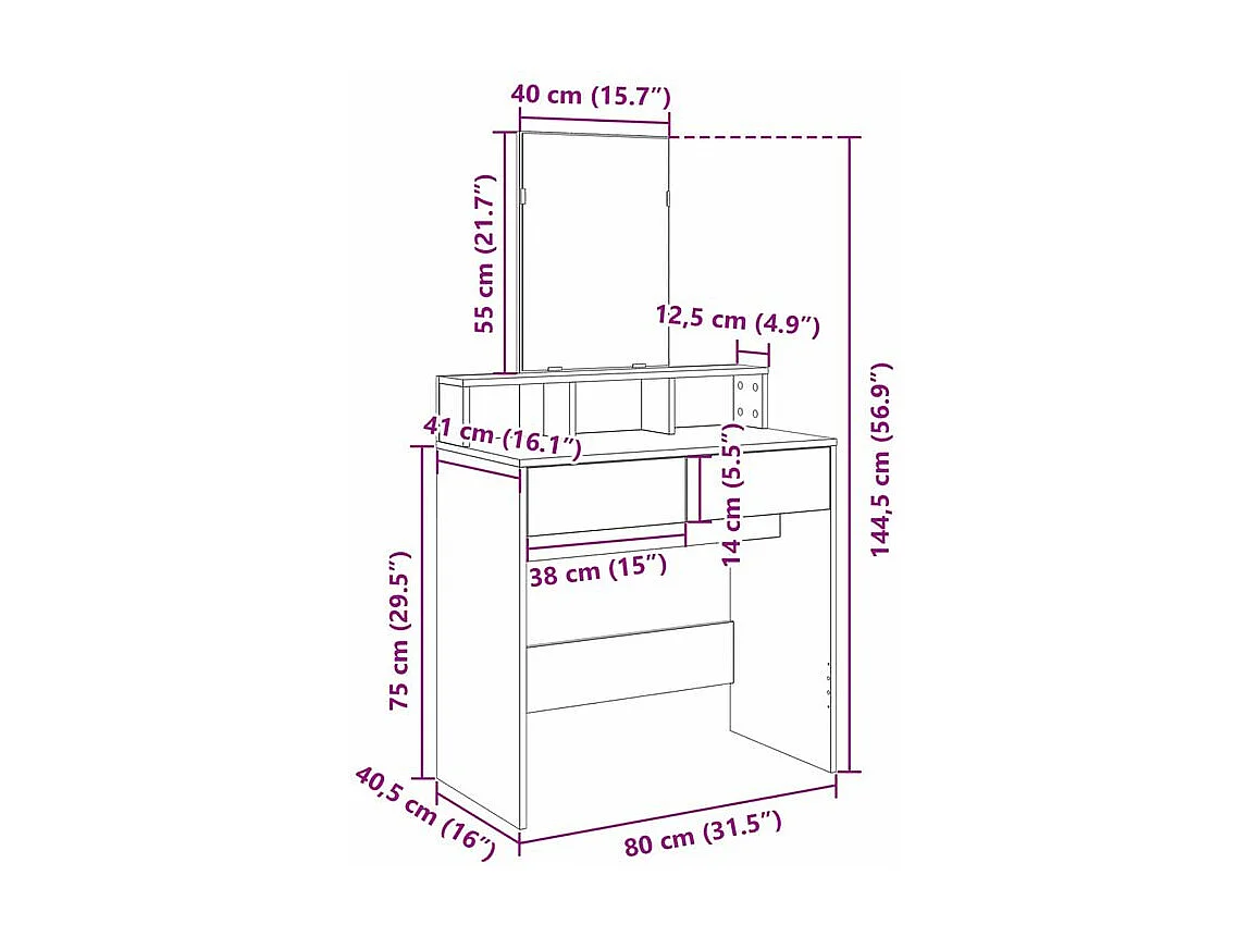 Coiffeuse avec armoire sonoma gris 80x35x132 cm FR809367