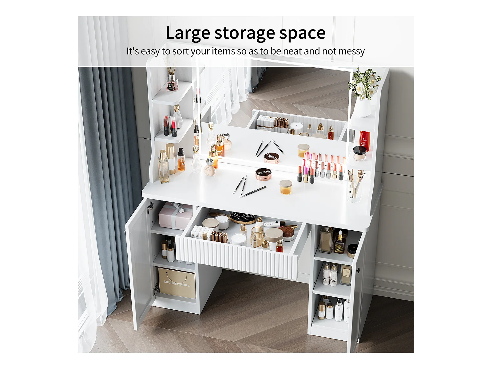 Coiffeuse avec Miroir LED à Luminosité Réglable,Dressing Table Moderne en Bois,Tiroir,3 Compartiments,110x40x138.5cm - Blanc