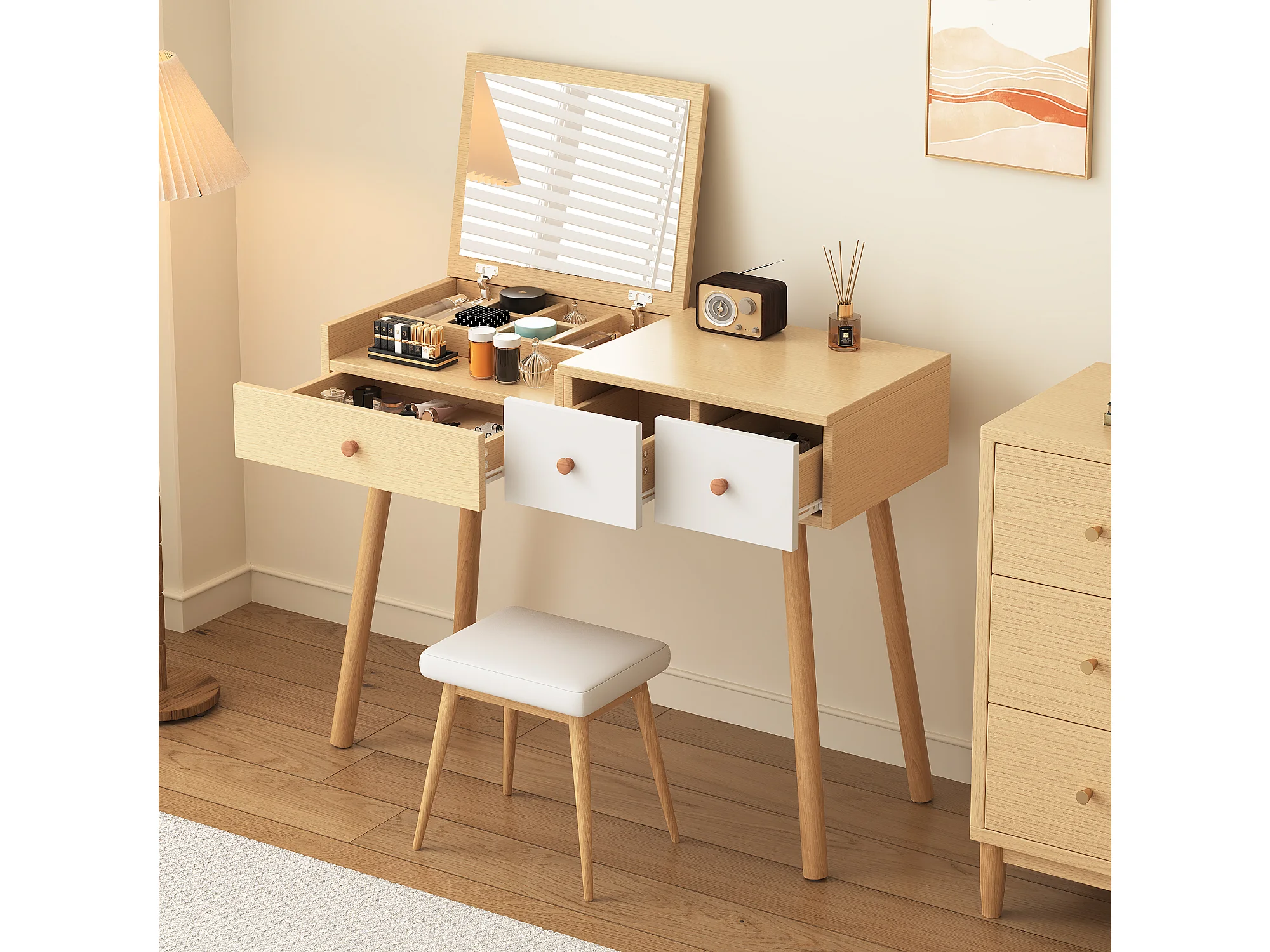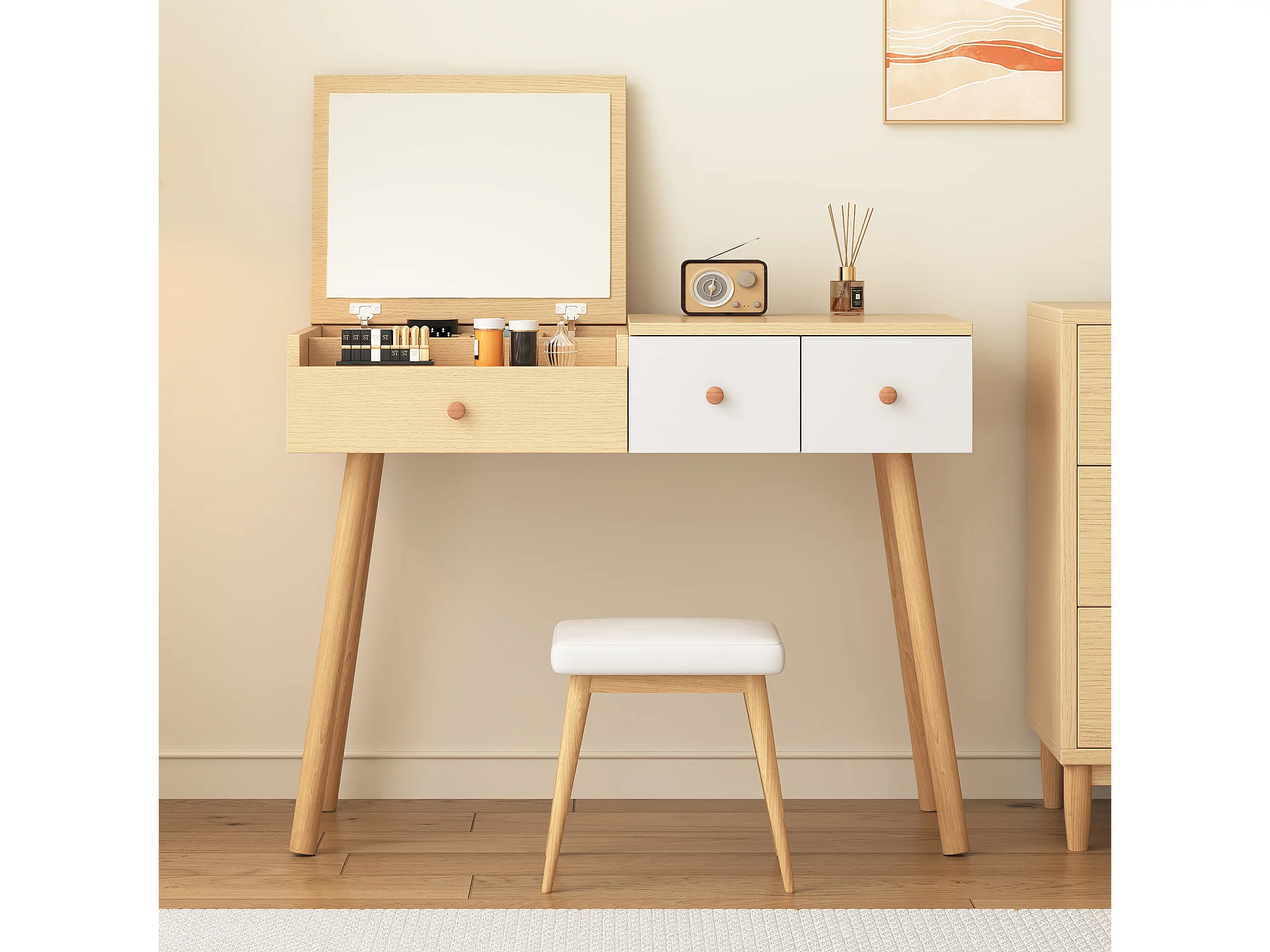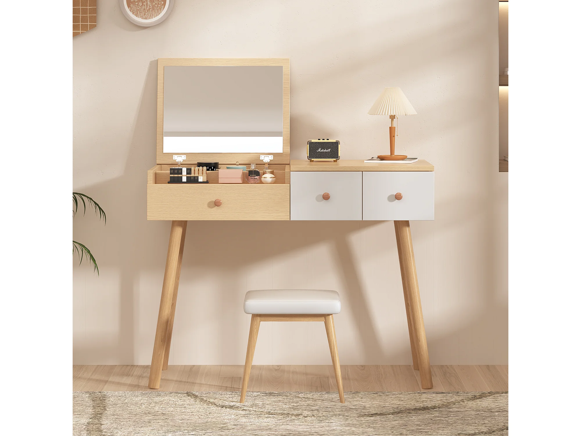 Coiffeuse avec miroir LED, tiroirs de rangement, design élégant, matériau en bois, blanc (100x40x78 cm)