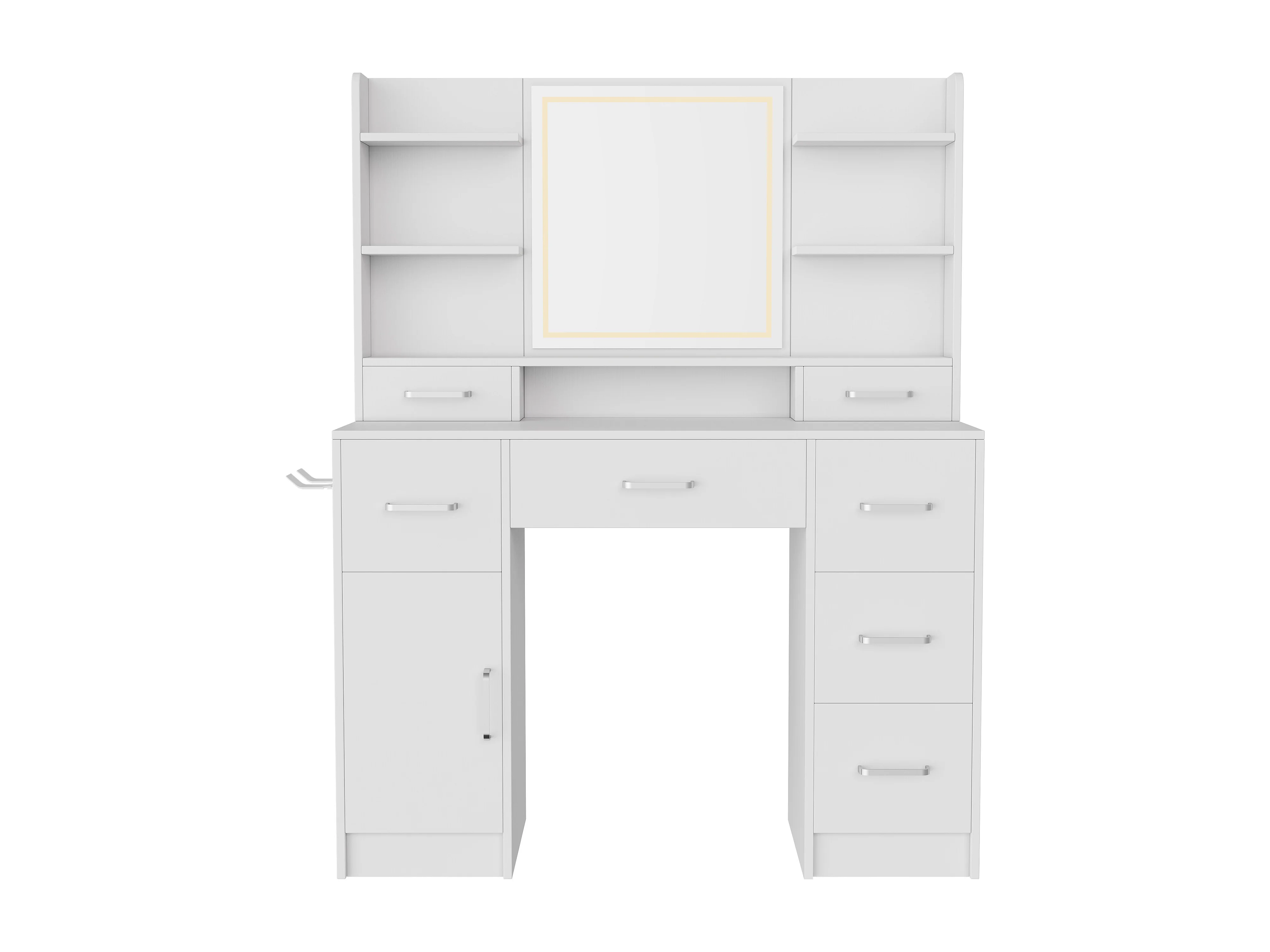 Coiffeuse avec Miroir, Luminosité Réglable, Bureau Coiffeuse avec 7 Tiroirs, Chargement USB, Support pour sèche-cheveux, MDF, Blanc
