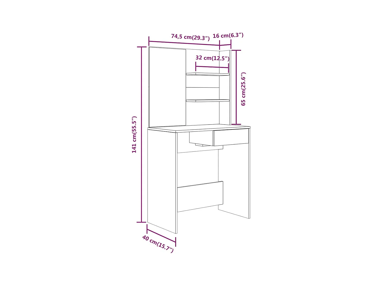 Coiffeuse avec miroir Sonoma gris 74,5x40x141 cm FR429942