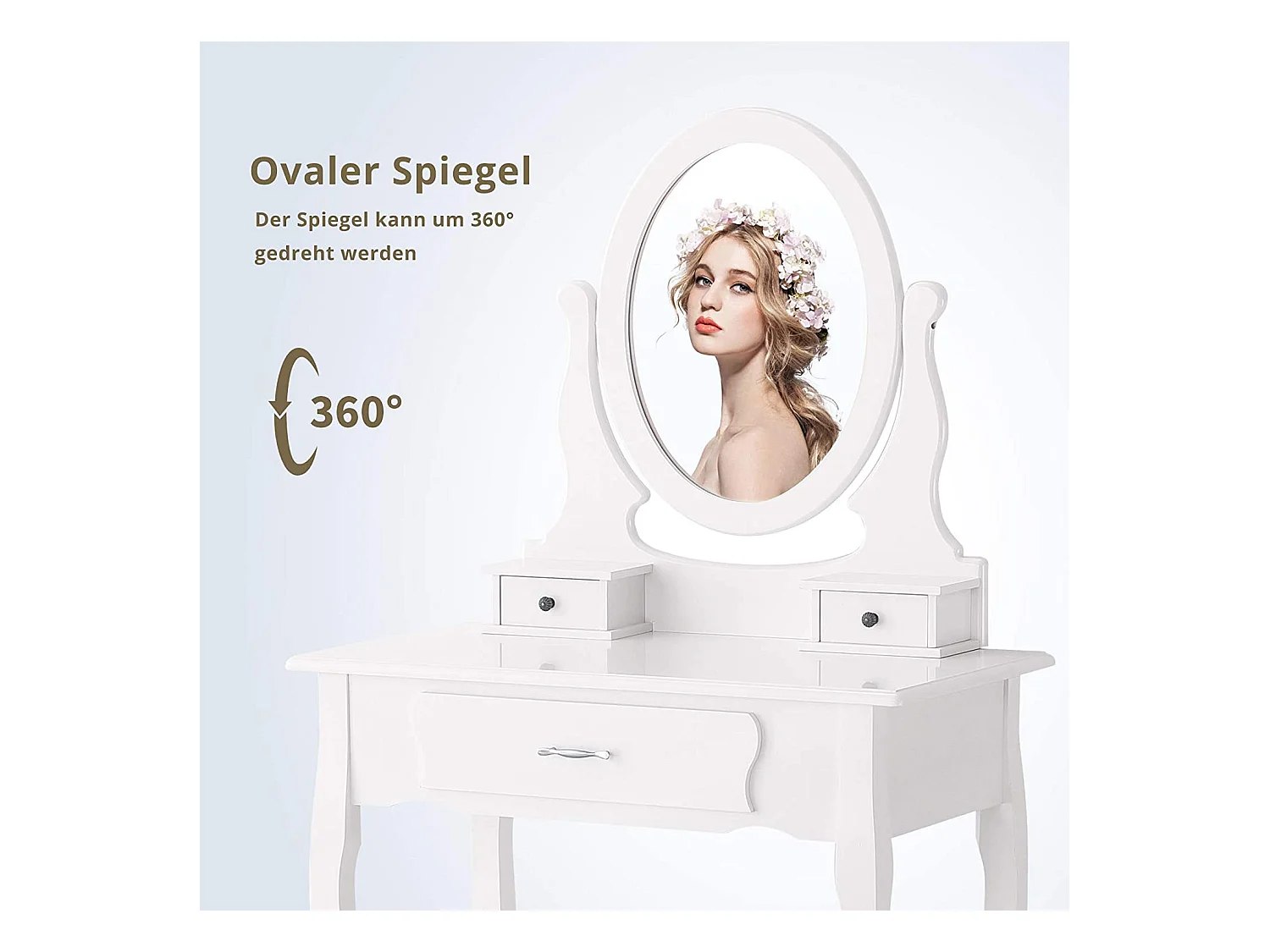 Coiffeuse, avec Tabouret, 1 miroirs, Miroir Pivotant et 3 tiroirs, Idéale pour Enfants et Adultes, Blanc