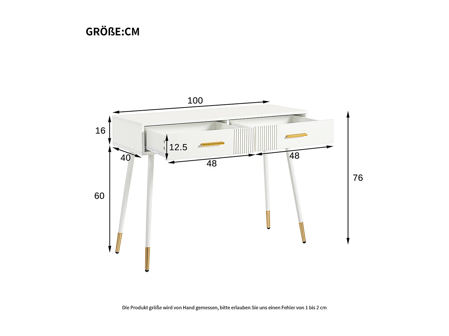 Coiffeuse blanc 2 tiroirs pieds métal sans miroir