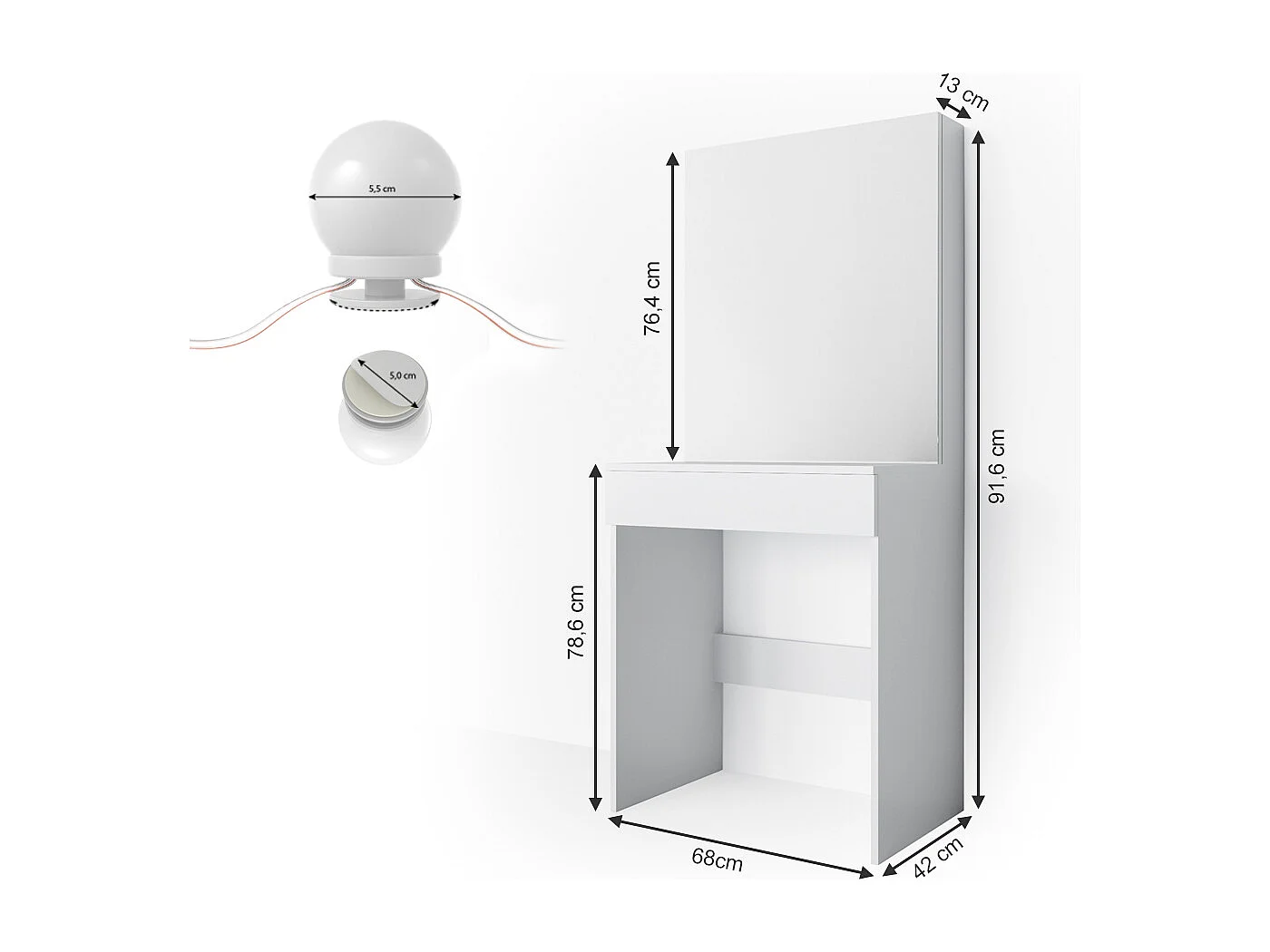 Coiffeuse blanc 68x42x155 melle