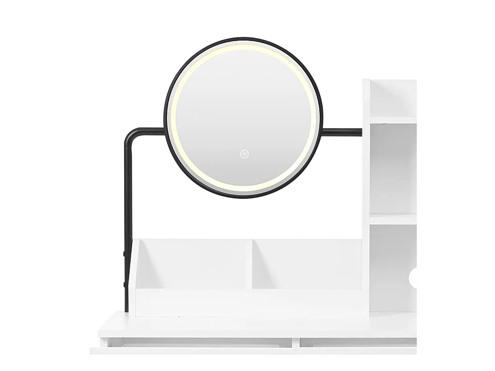 Coiffeuse blanc éclairage LED miroir armoire latérale réglable design extensible sans tabouret