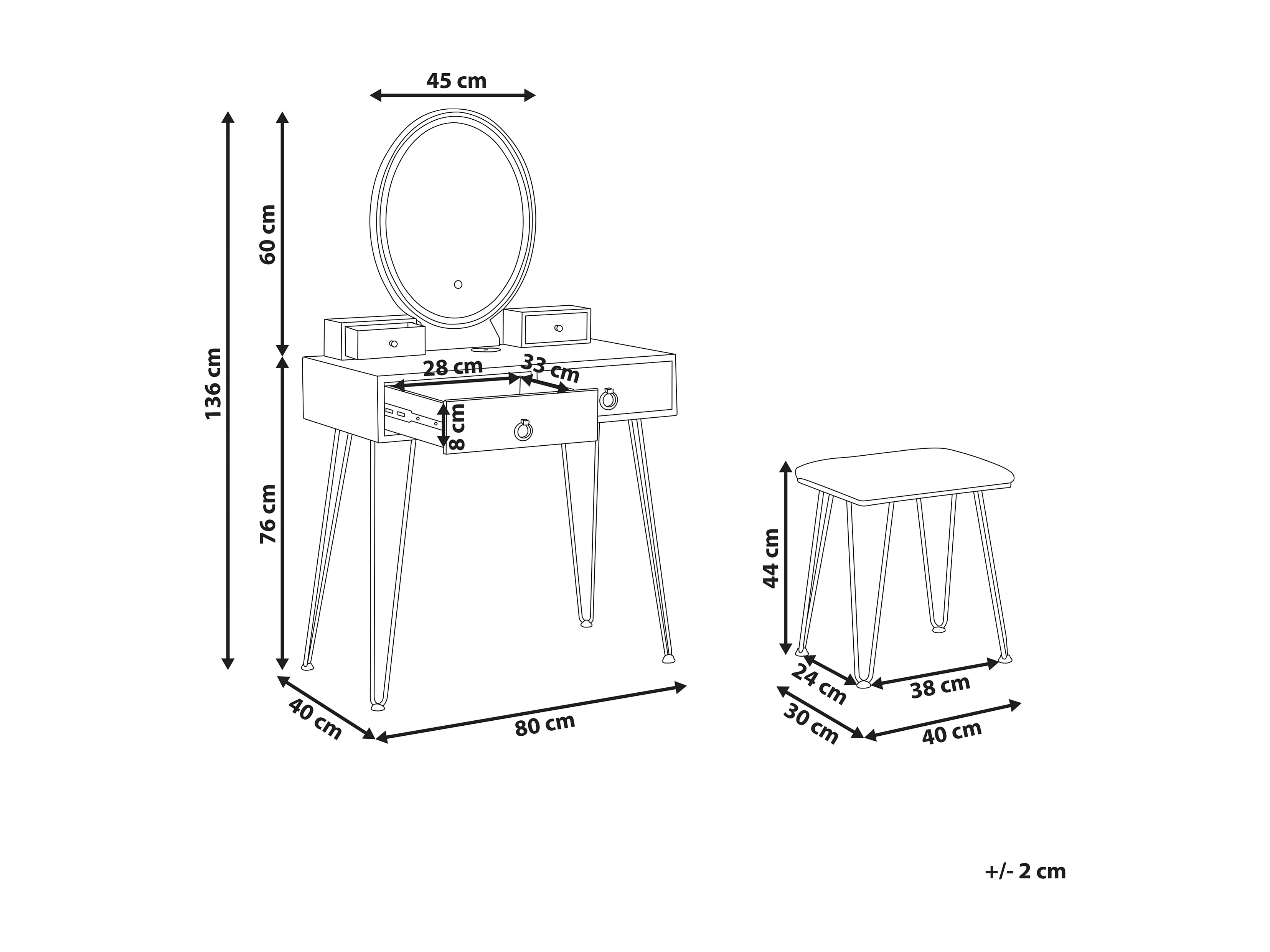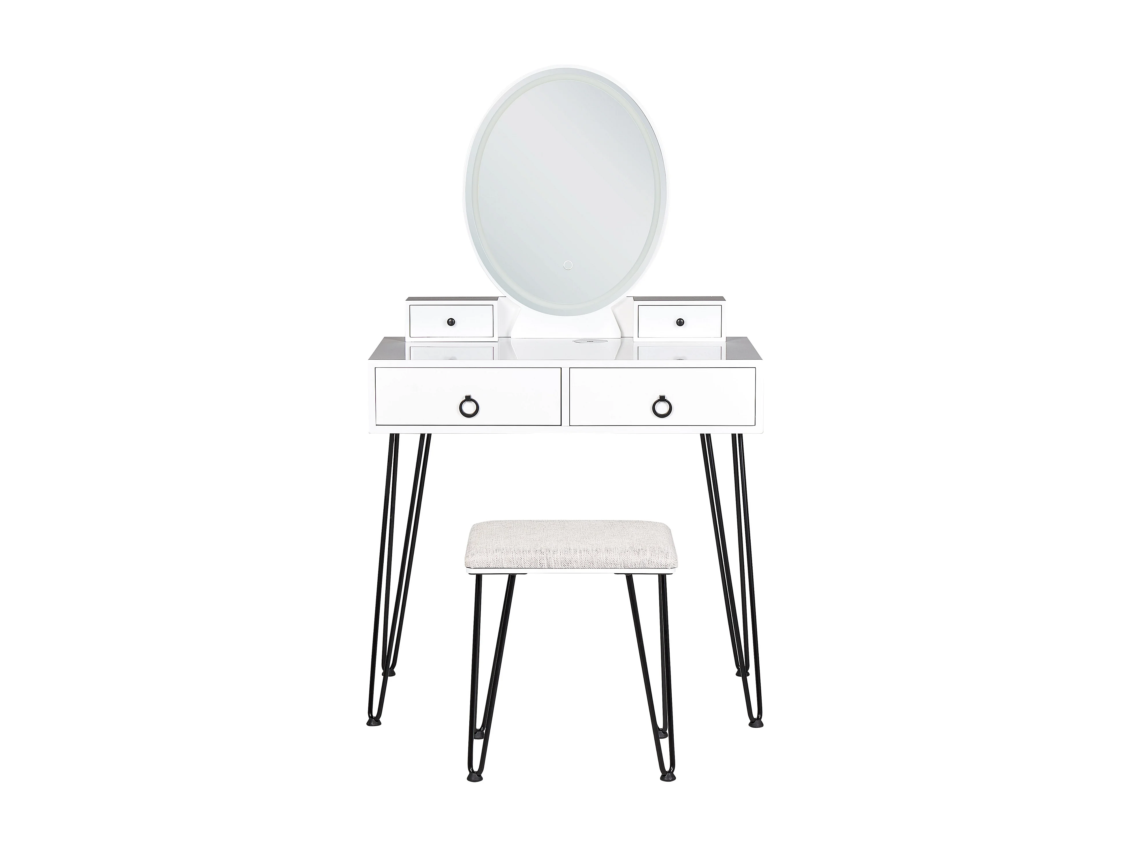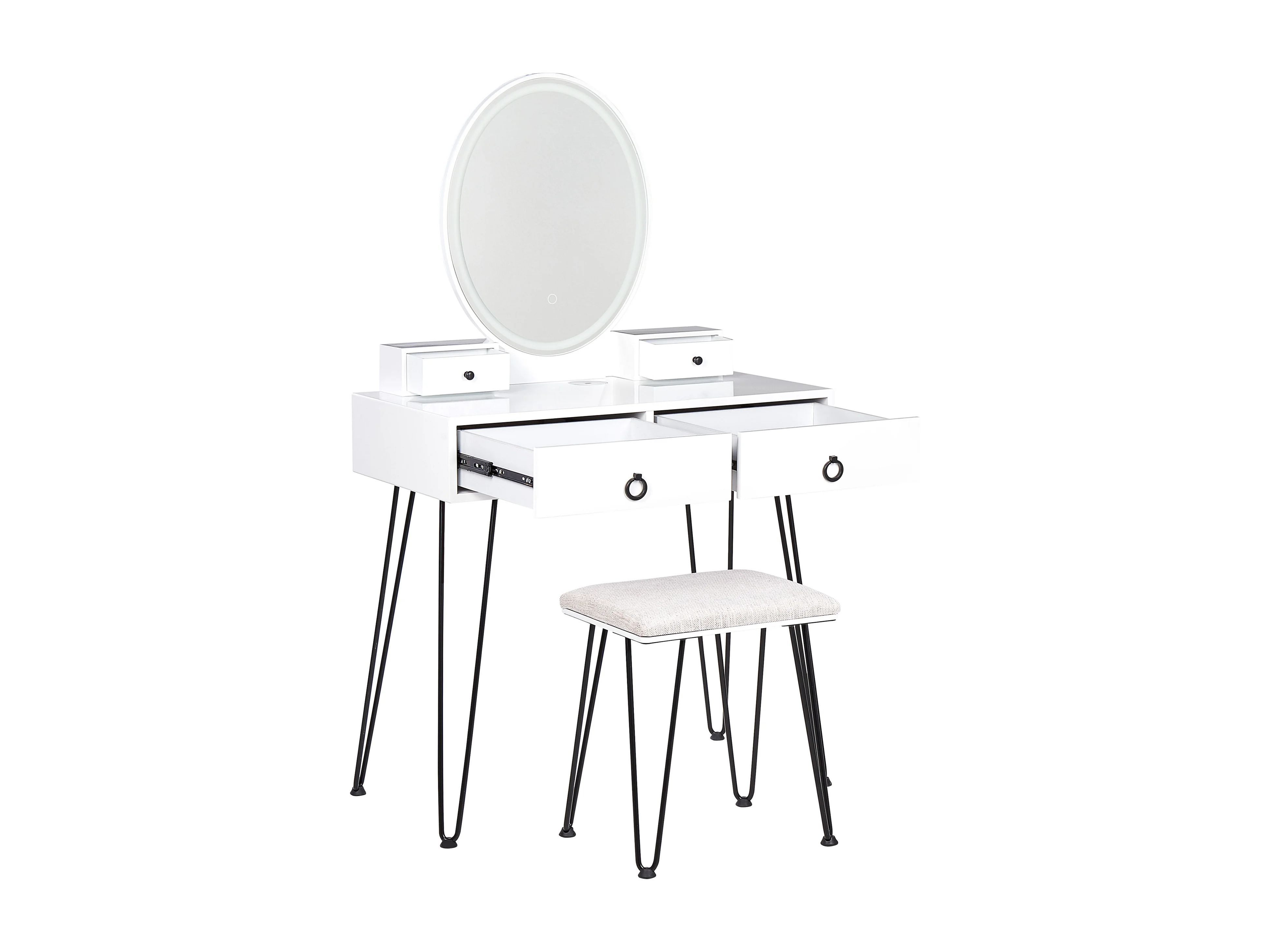 Coiffeuse avec miroir et tabouret SOYE LED Blanc