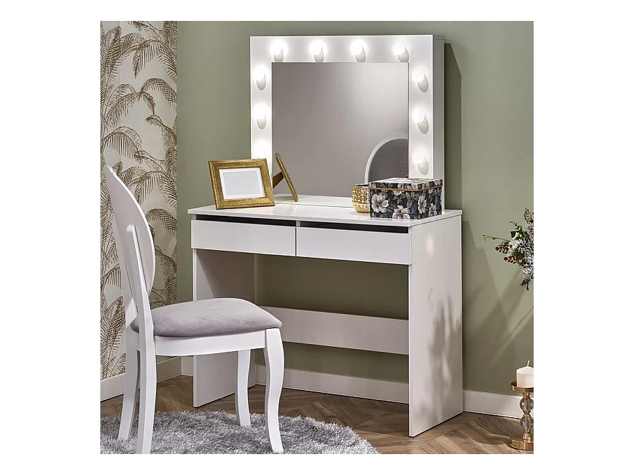 Coiffeuse blanche avec tiroirs et éclairage led STARS
