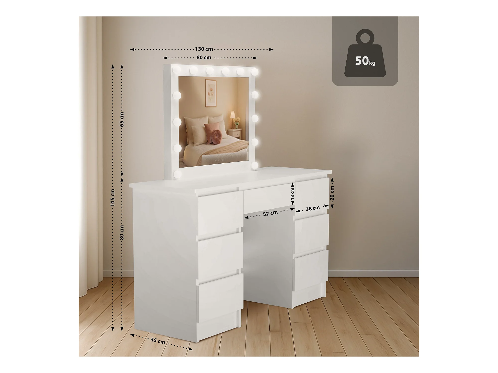 Coiffeuse - carré - Bois - 130 x 45 cm - Blanc - Duffy