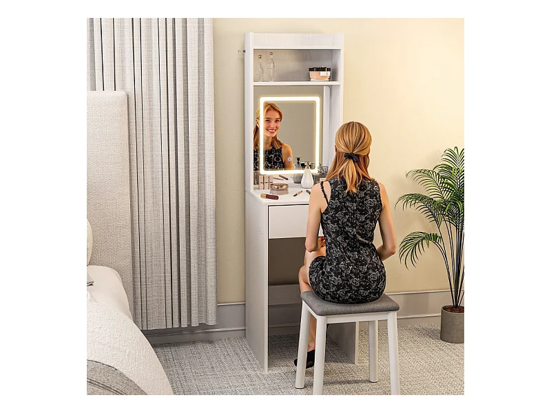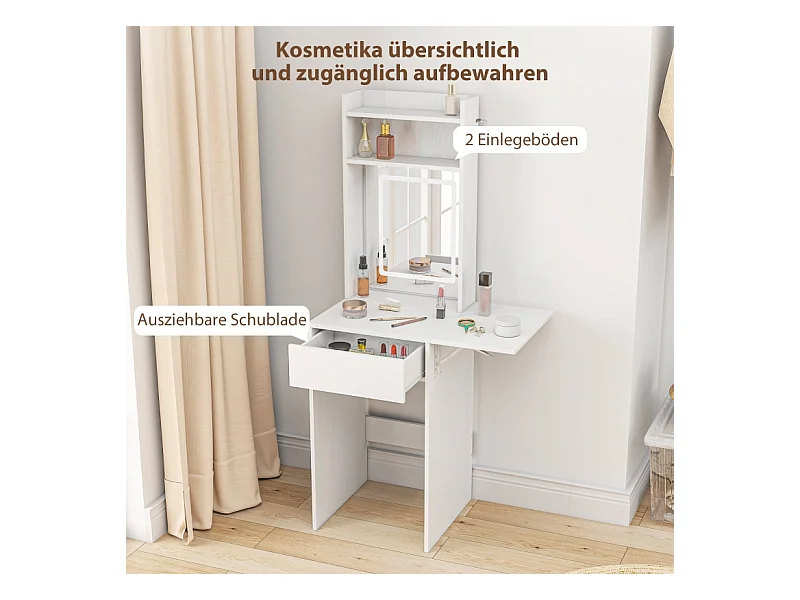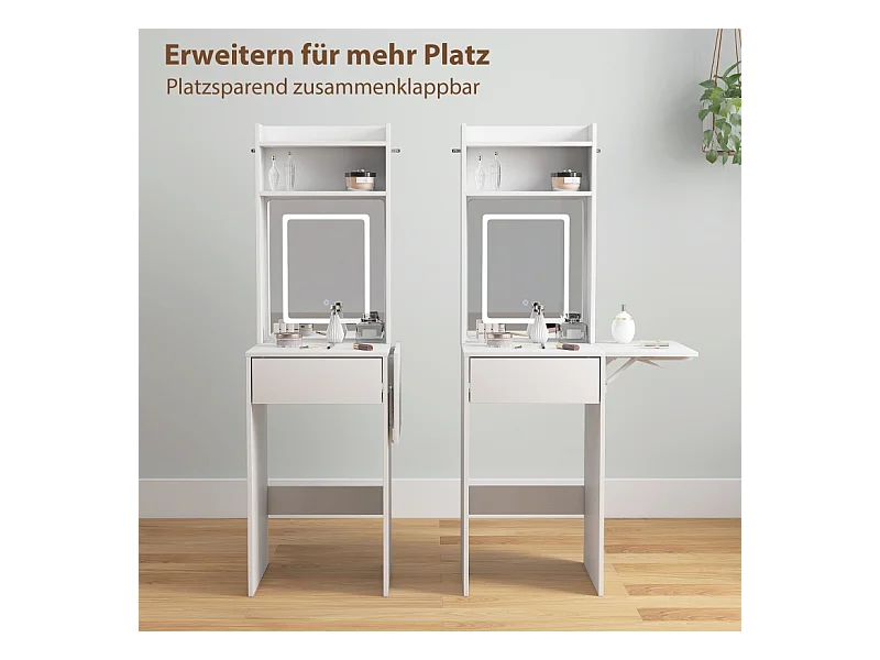Coiffeuse compacte avec miroir LED, design pliable, MDF, blanc (45x45x152 cm)
