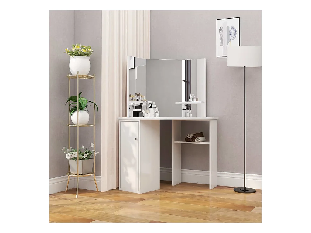 Coiffeuse d'angle Table de maquillage cosmétique Blanc