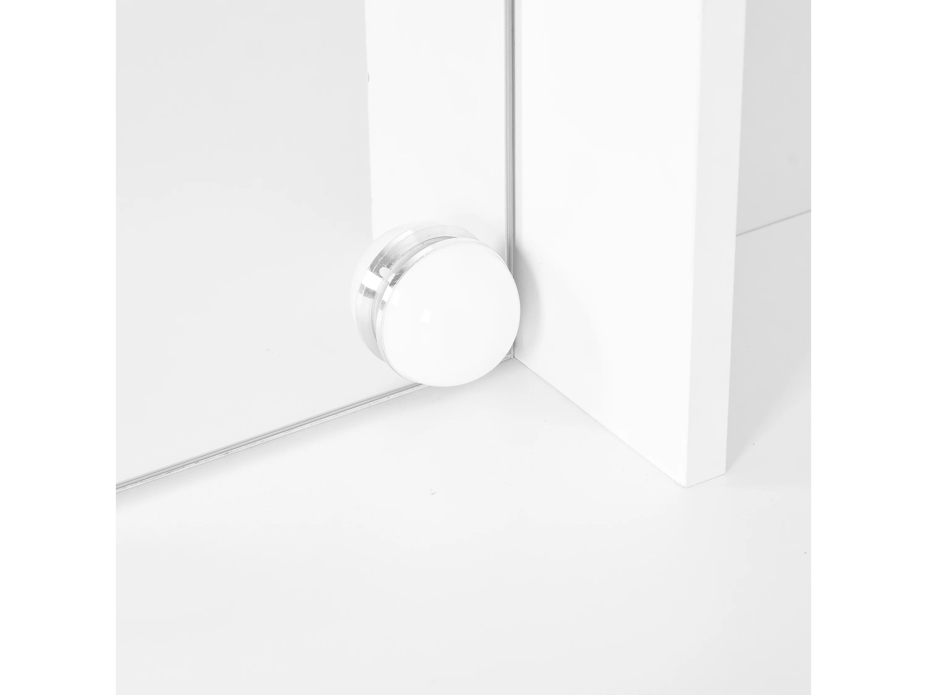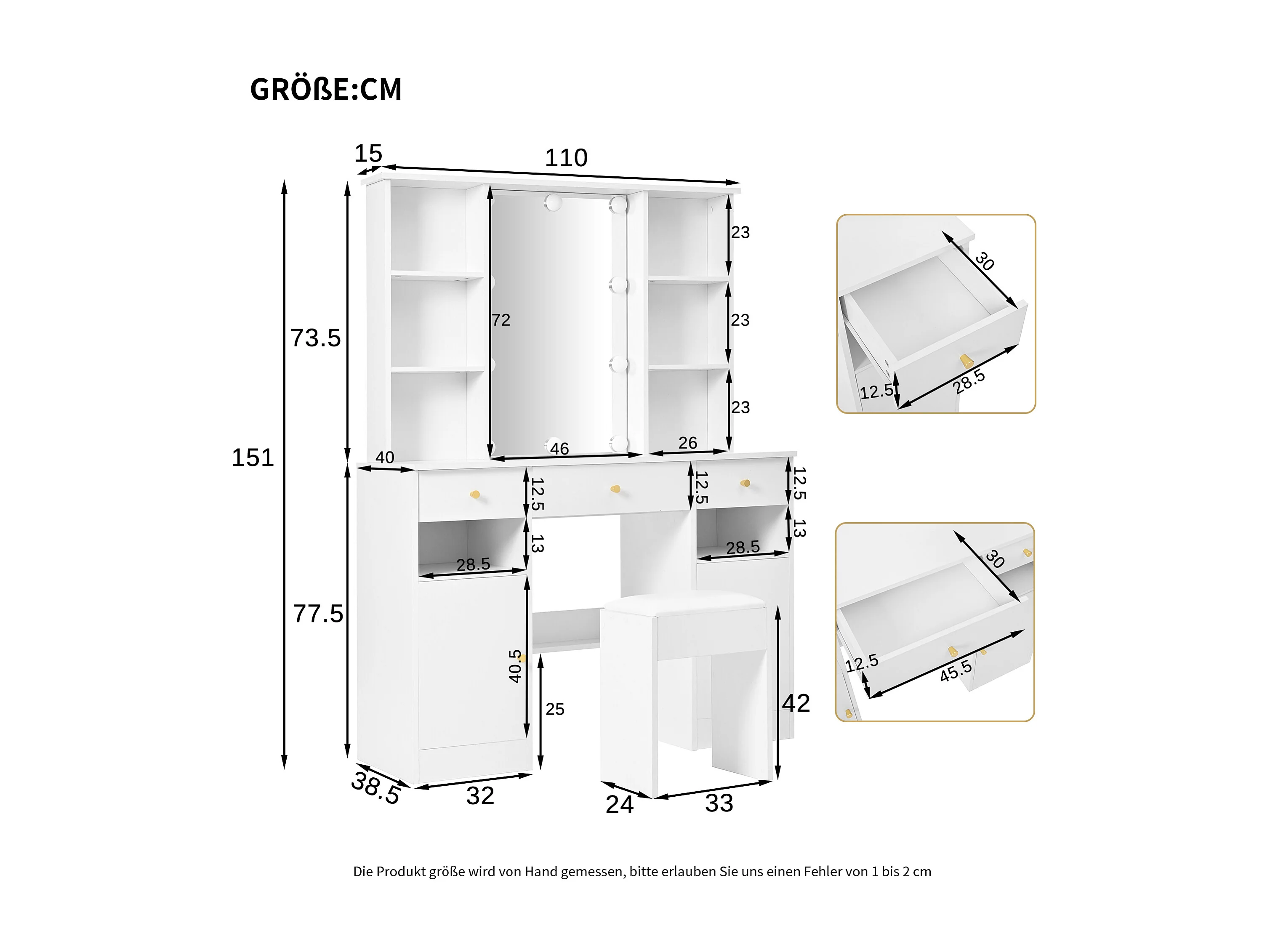 Coiffeuse de chambre à coucher avec 3 tiroirs et 2 portes, miroir LED, blanc - tabouret inclus