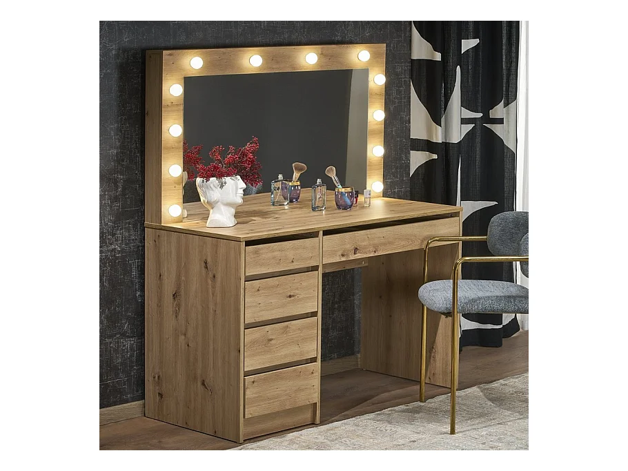 Coiffeuse design à led + miroir couleur chêne Bromo