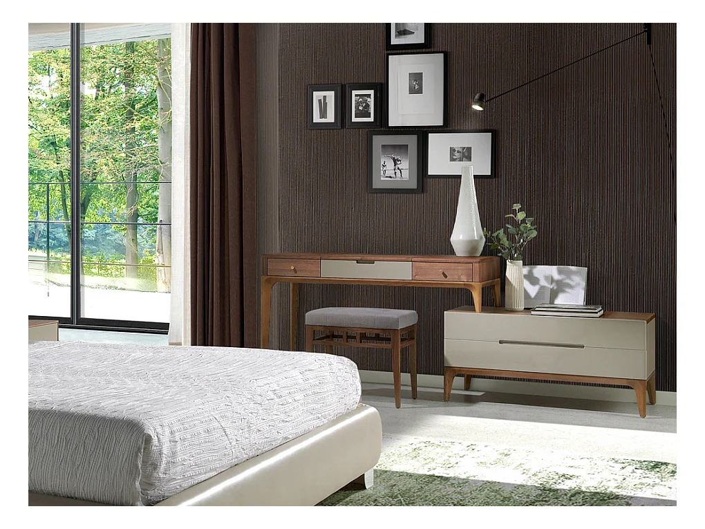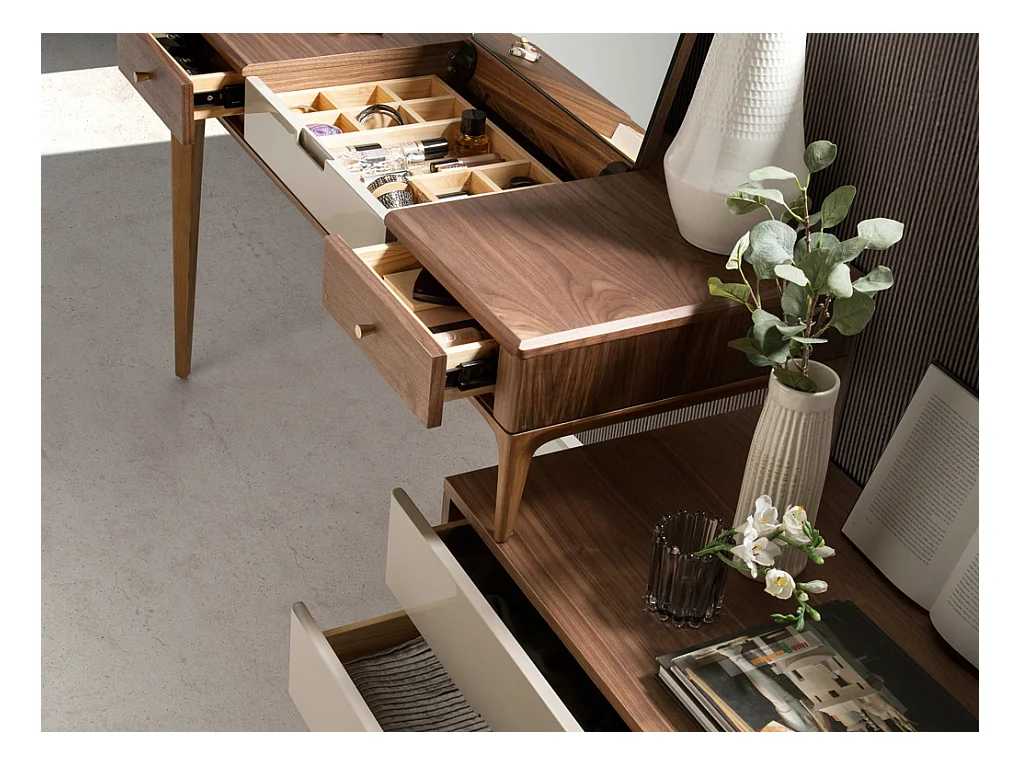 Coiffeuse en bois de noyer laqué 4 tiroirs Billy-Couleur Bambu