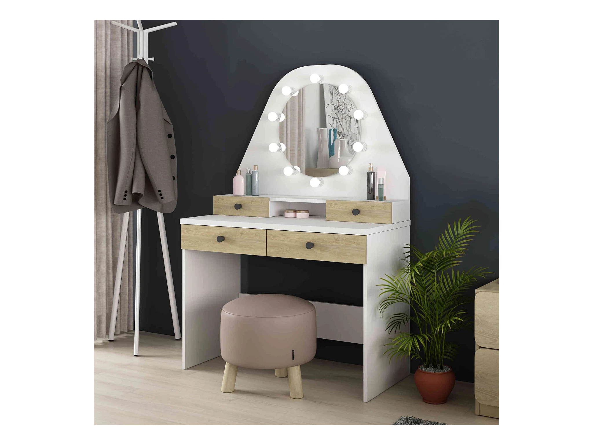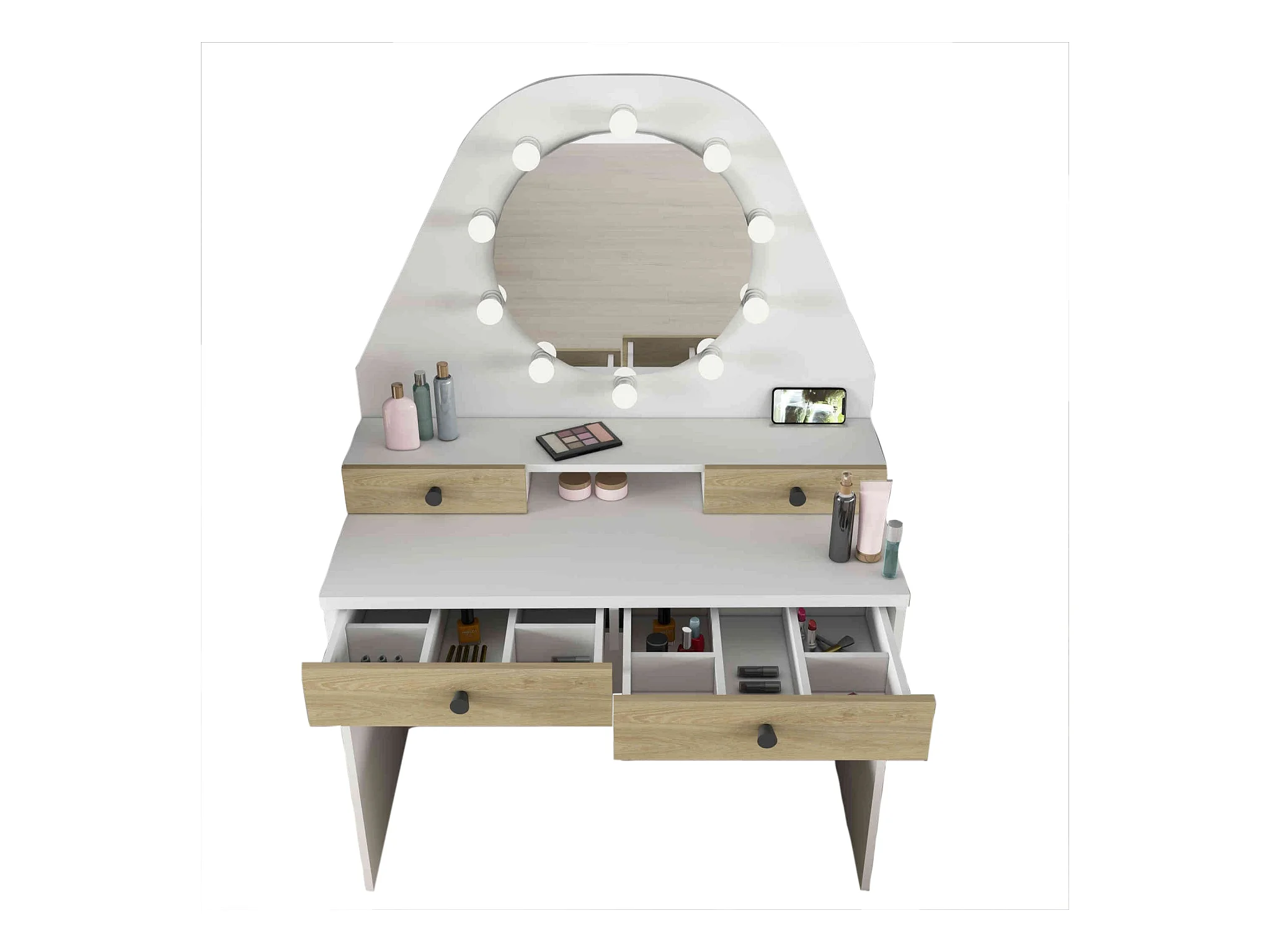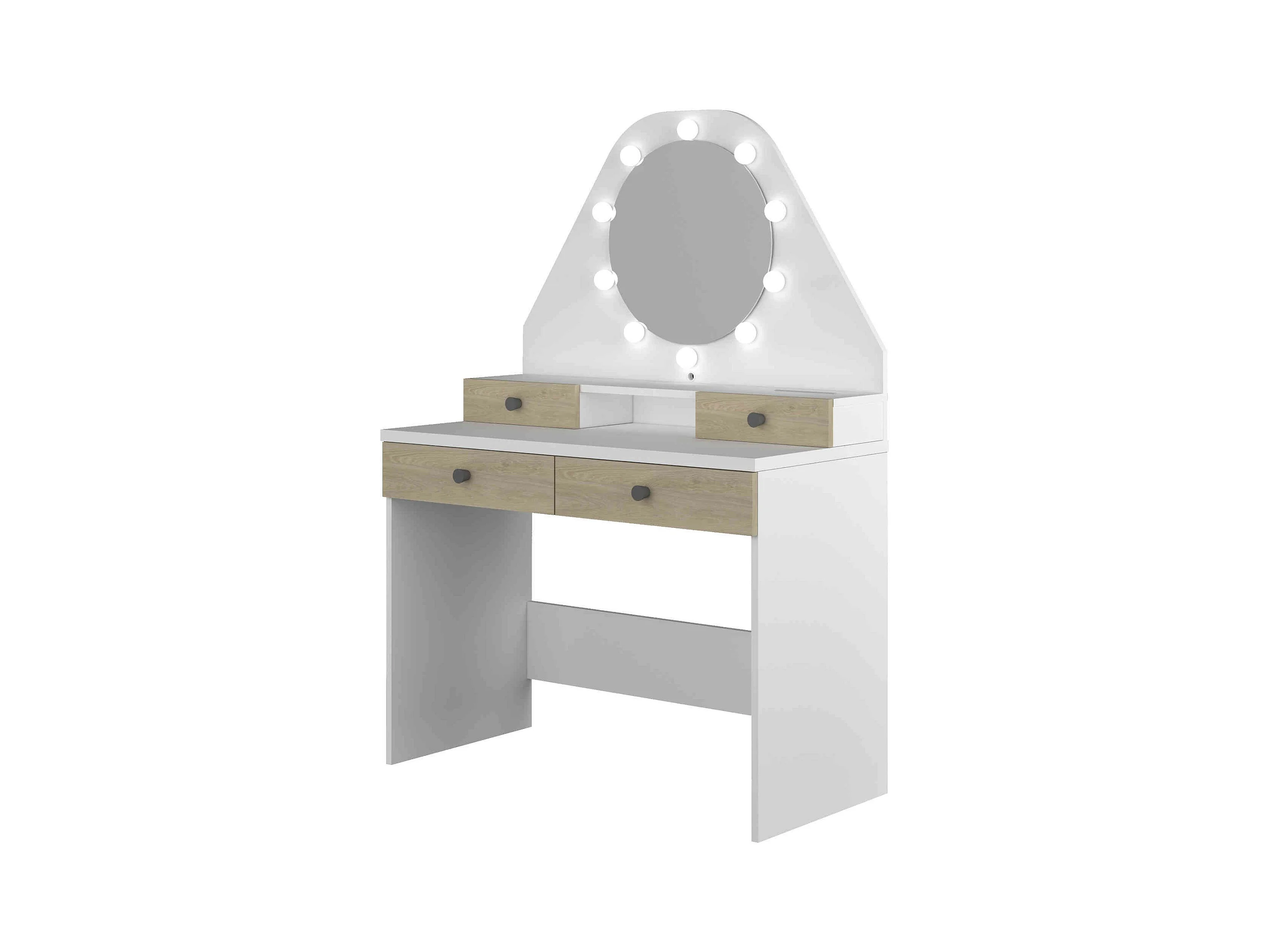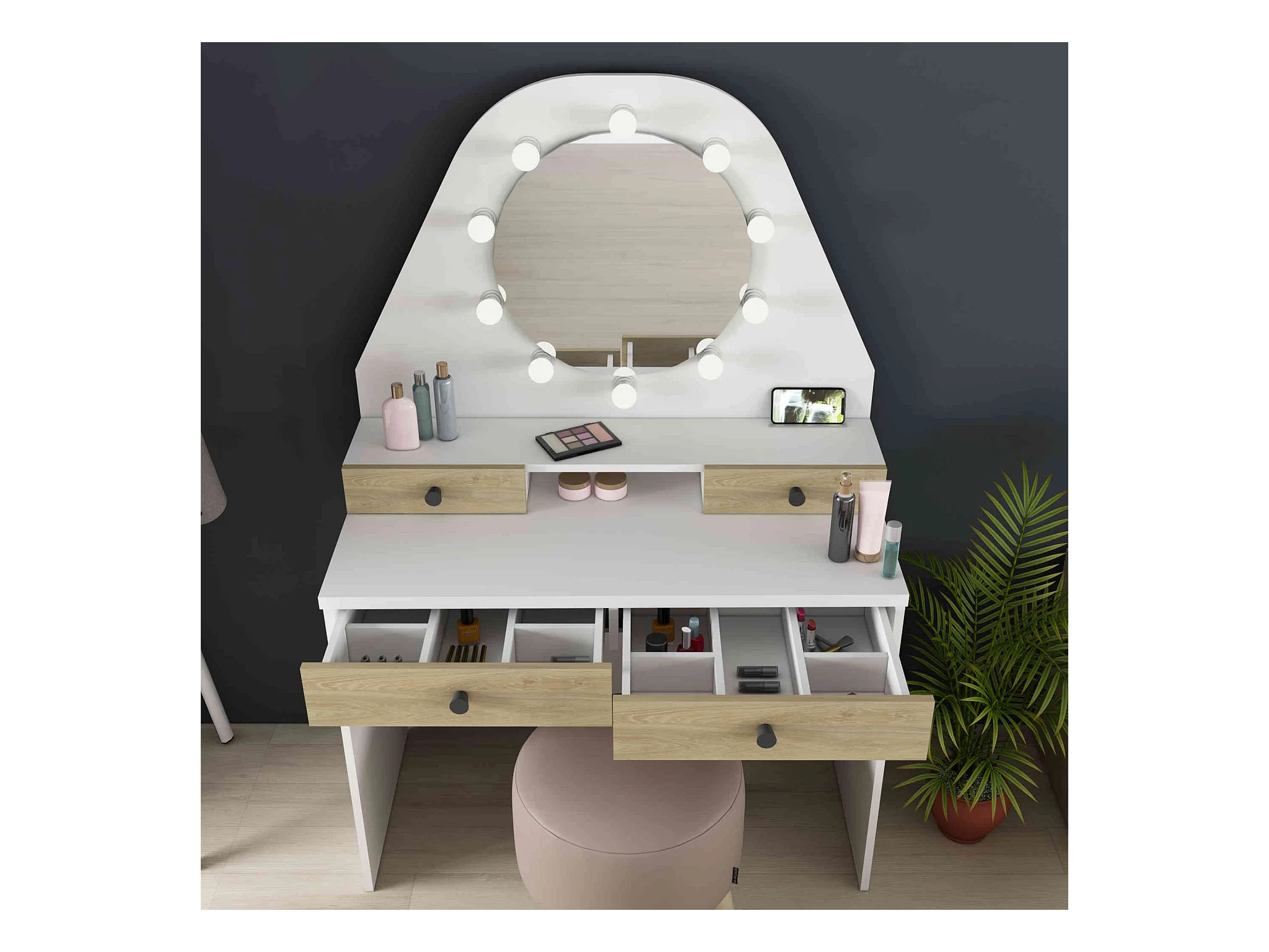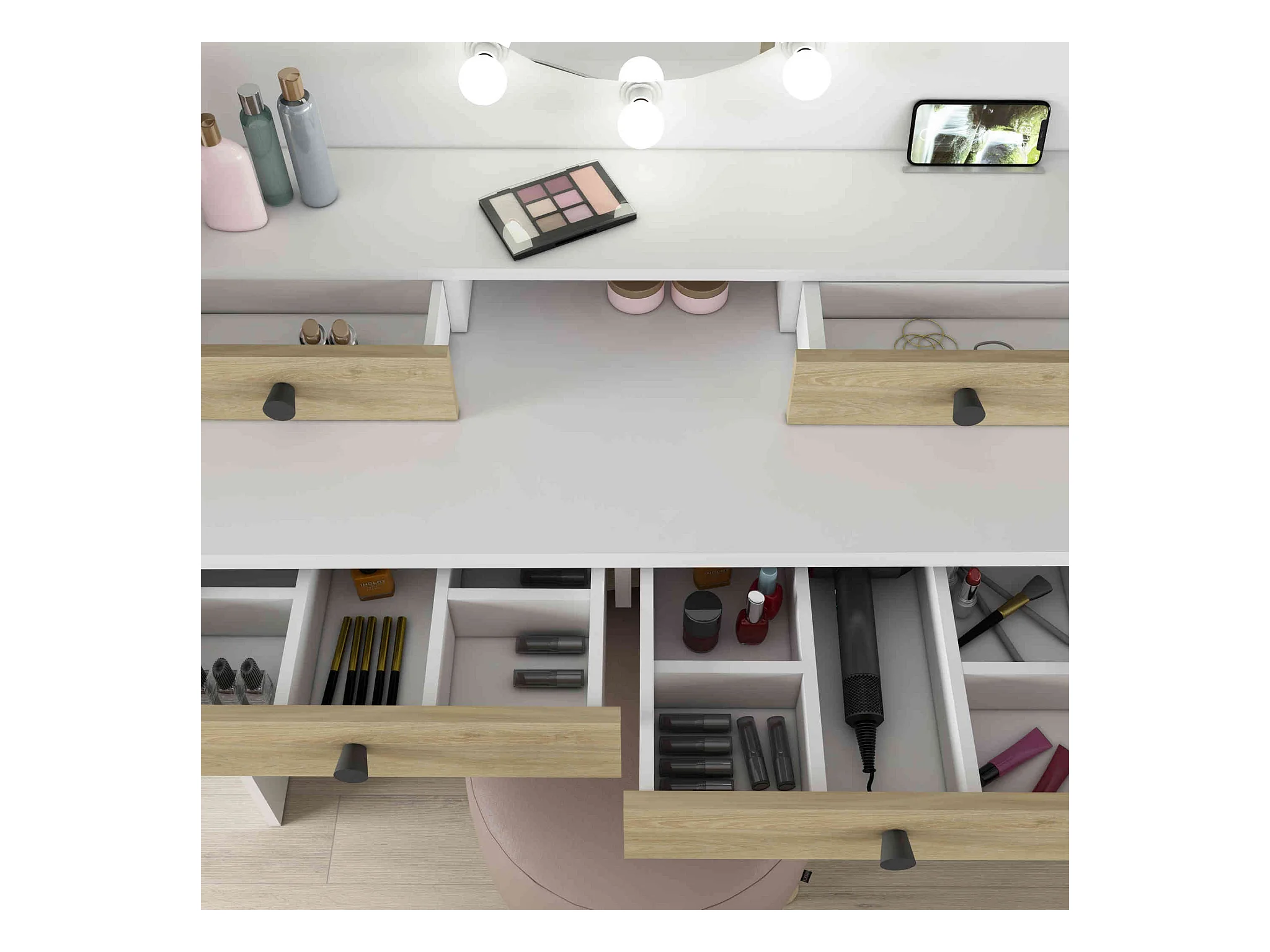 Coiffeuse enfant avec miroir en bois blanc et imitation chêne - CF9010