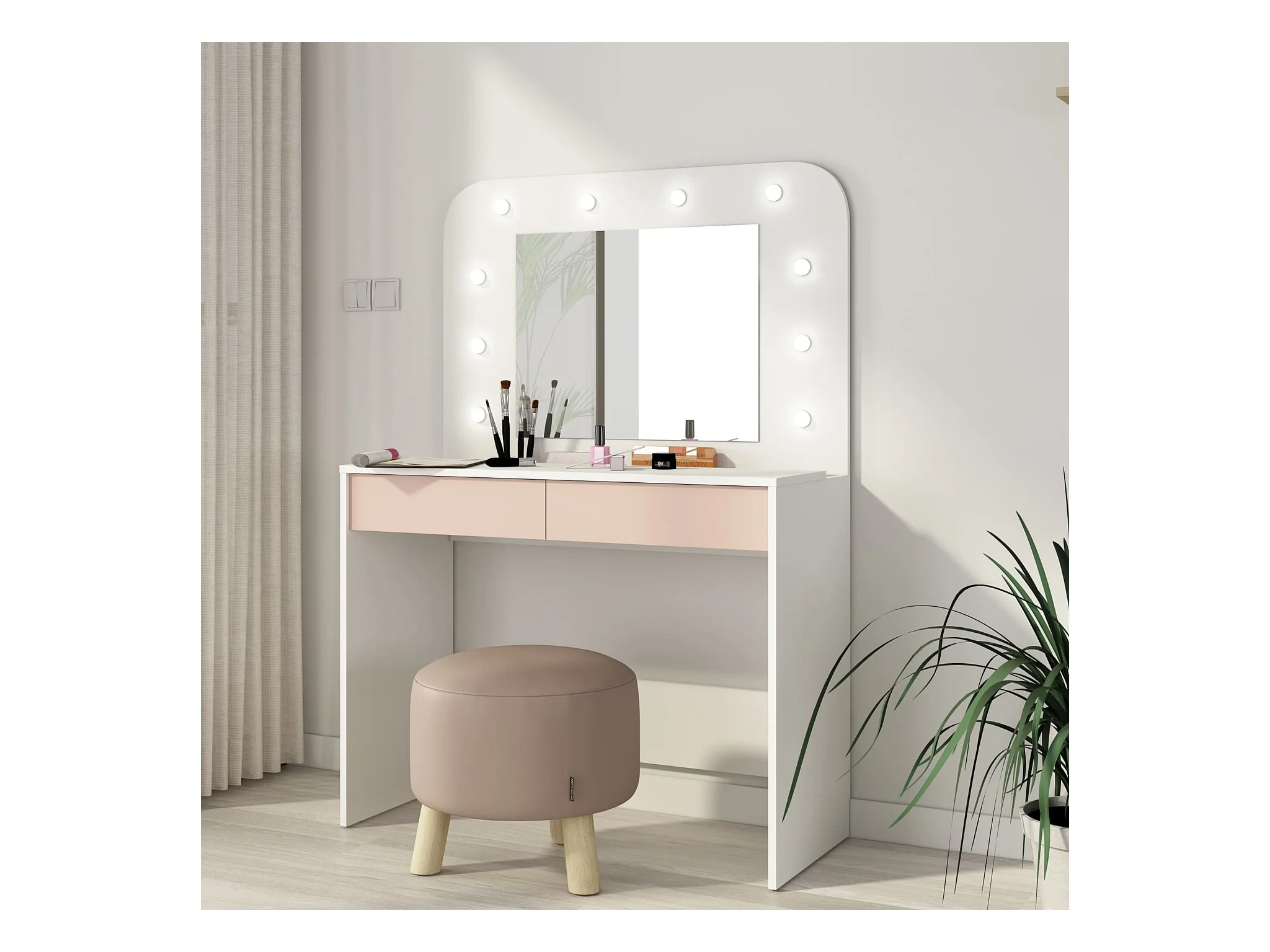 Coiffeuse enfant en bois blanc et rose avec miroir et LED - CF9076