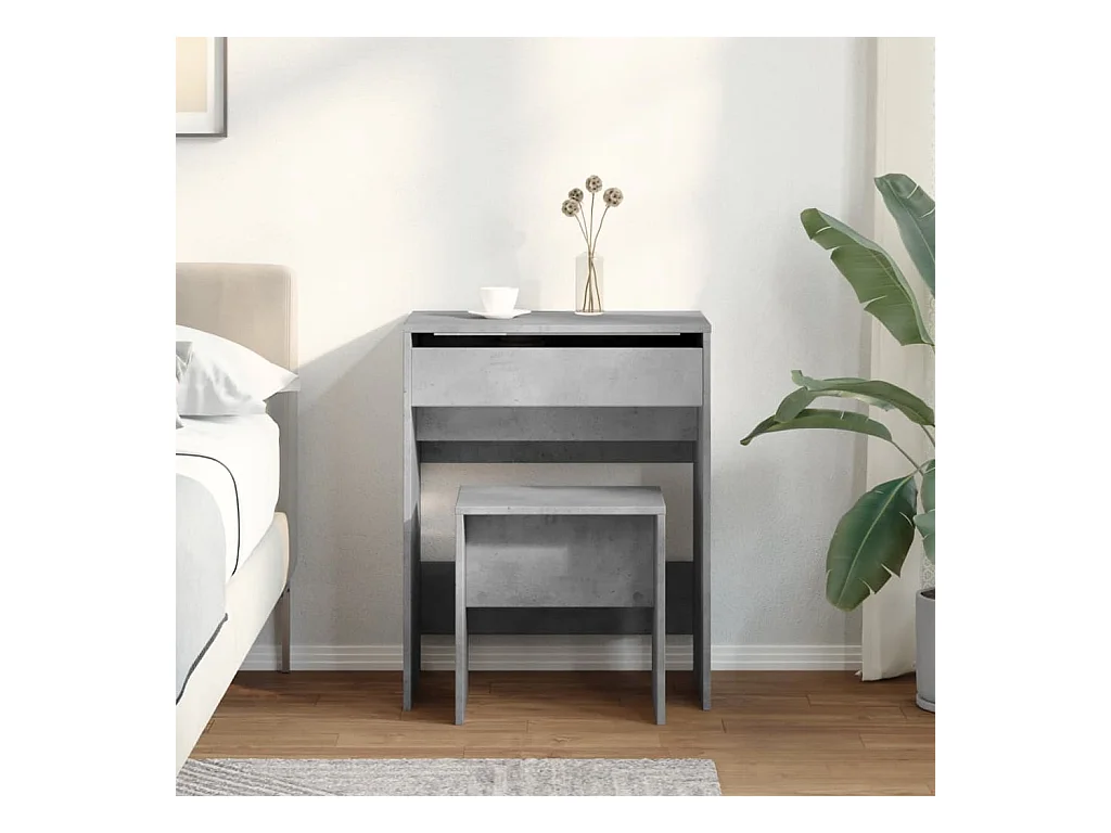 Coiffeuse et tabouret gris béton 60x40x113,5