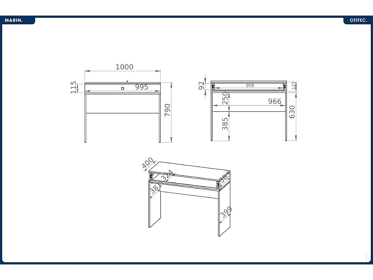 Coiffeuse - H.79 x L.100 x P.40 cm - MARIN