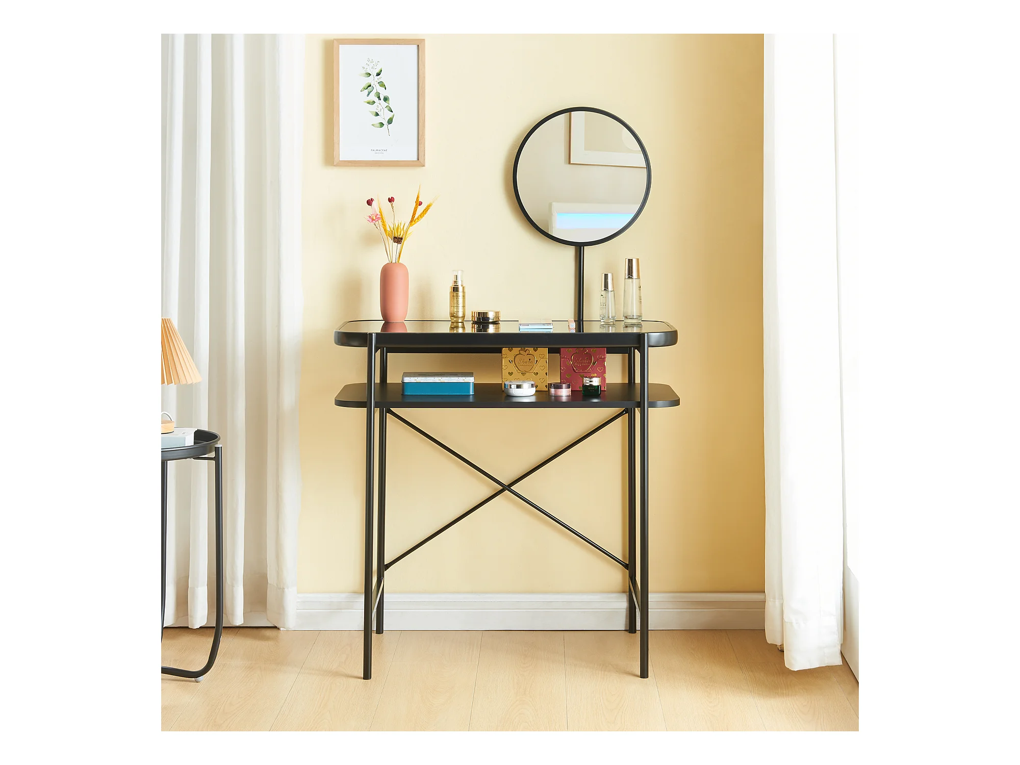 Coiffeuse Hjelmeland acier verre 129 x 80 x 44 cm noir [en.casa]