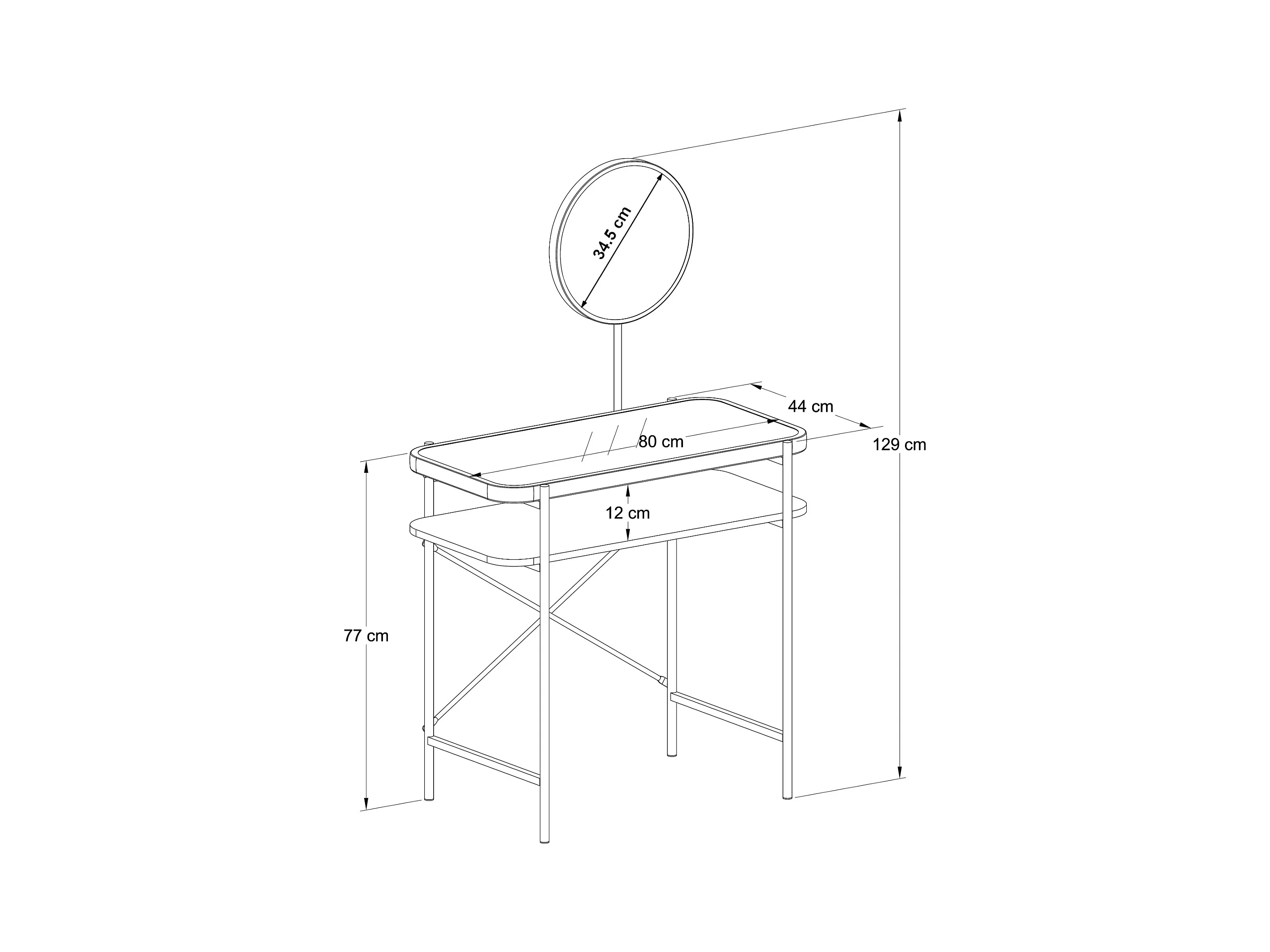 Makeup table Kosmal White / Anthracite H. 133 x W. 80 x D. 40 cm