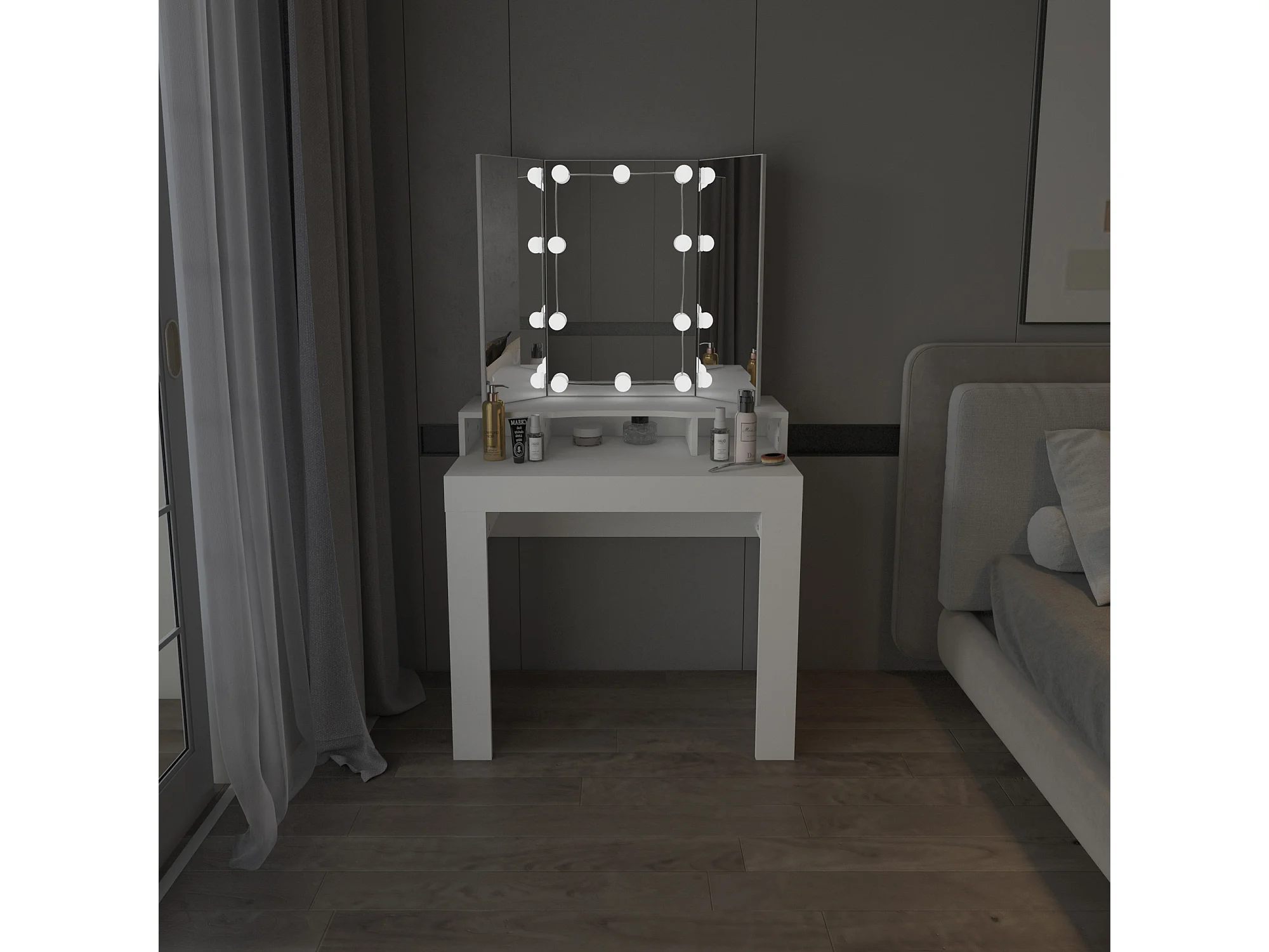 Coiffeuse LED Coiffeuse Commode Miroir Tabouret Gris foncé