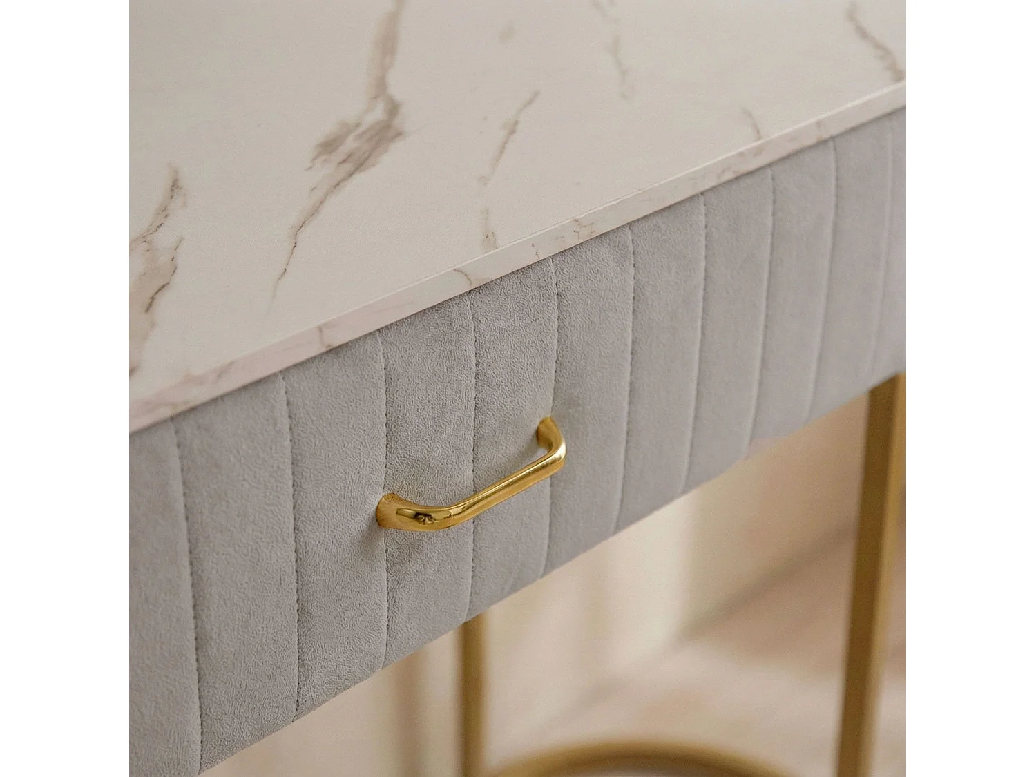 Coiffeuse À Tiroir Dessus De Table En Faux Marbre Vita - Couleurs - Velours Taupe
