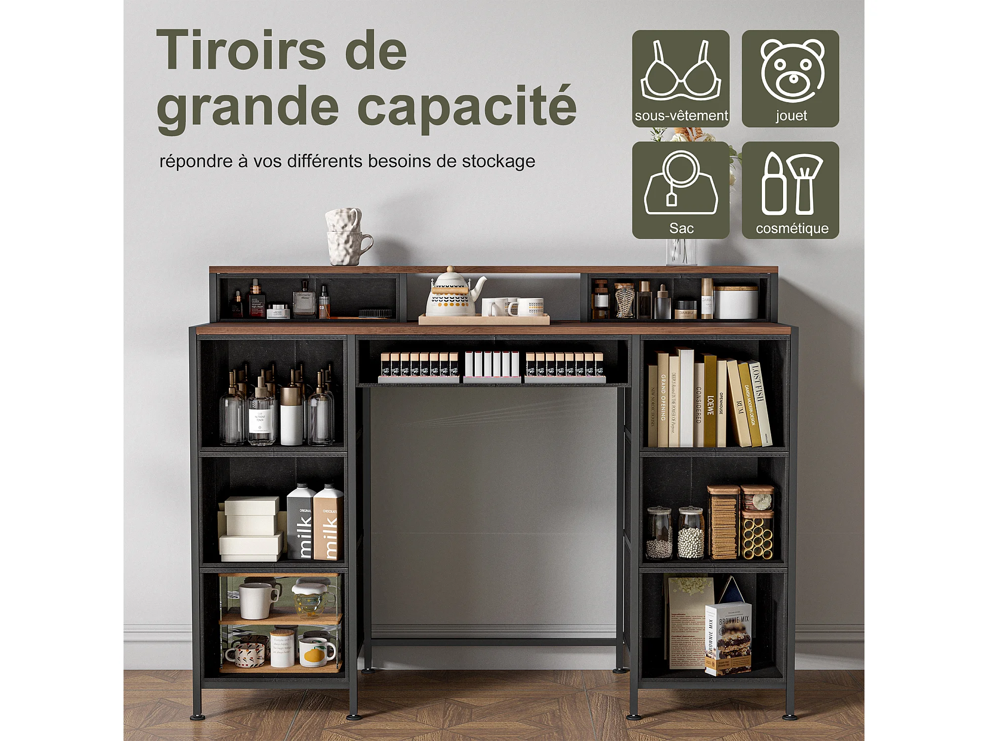 Coiffeuse pour Chambre à Coucher Vintage à Fleurs - 9 Tiroirs et 2 Étagères Ouvertes, Armoire de Rangement en Tissu