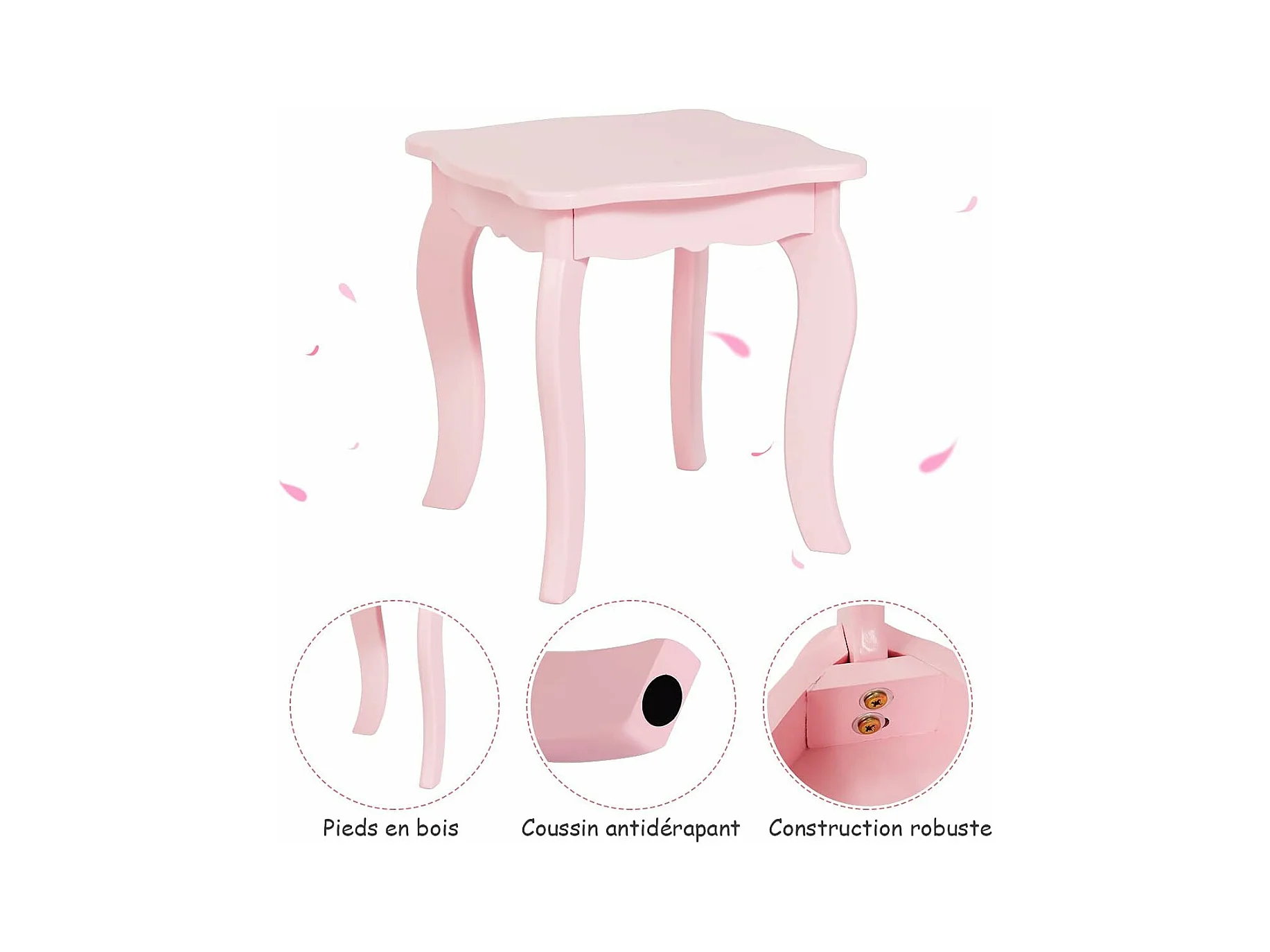 Coiffeuse pour Enfants avec Miroir et Tabouret en Bois - Style Princesse Cadeau pour Filles Rose