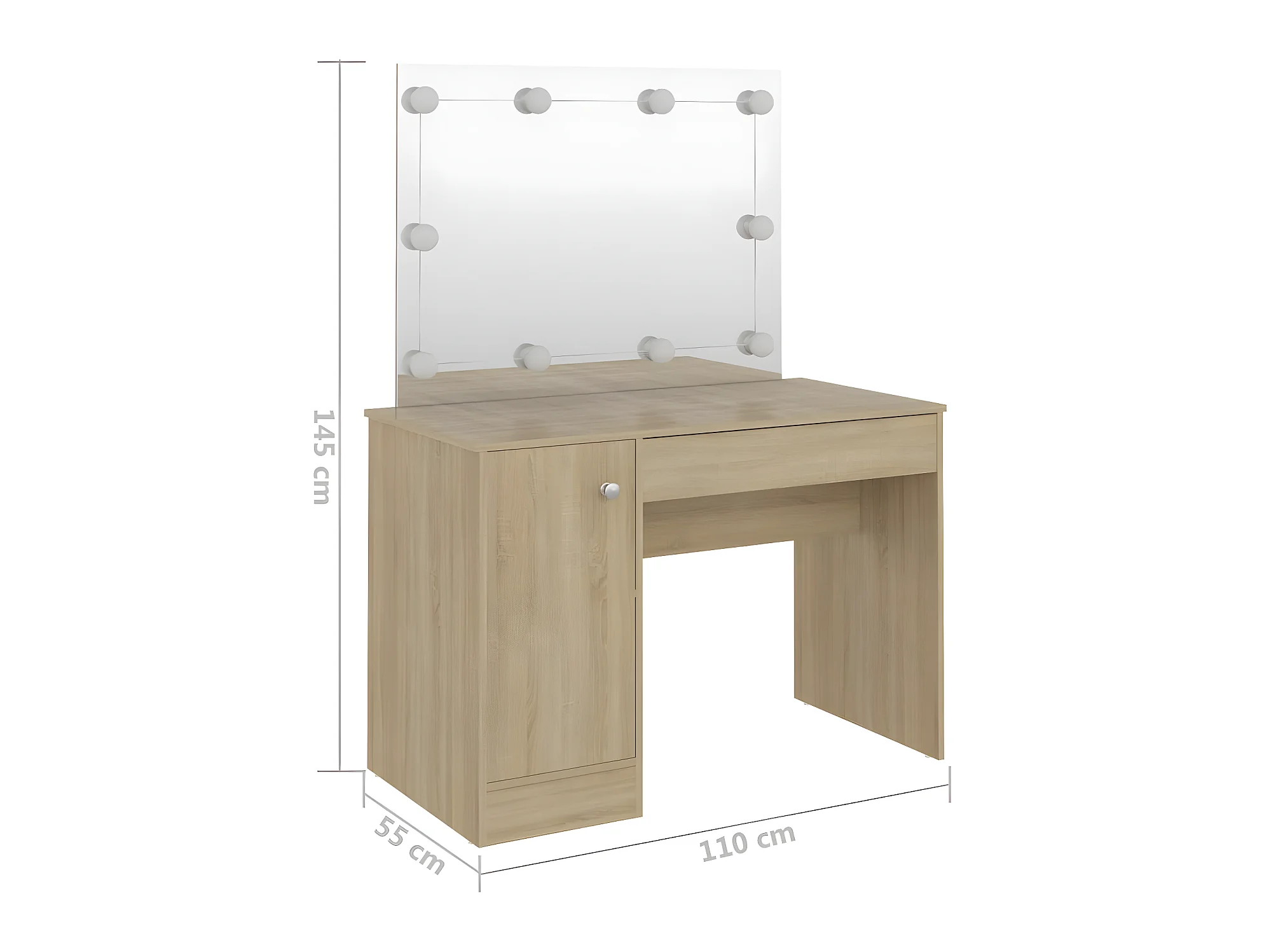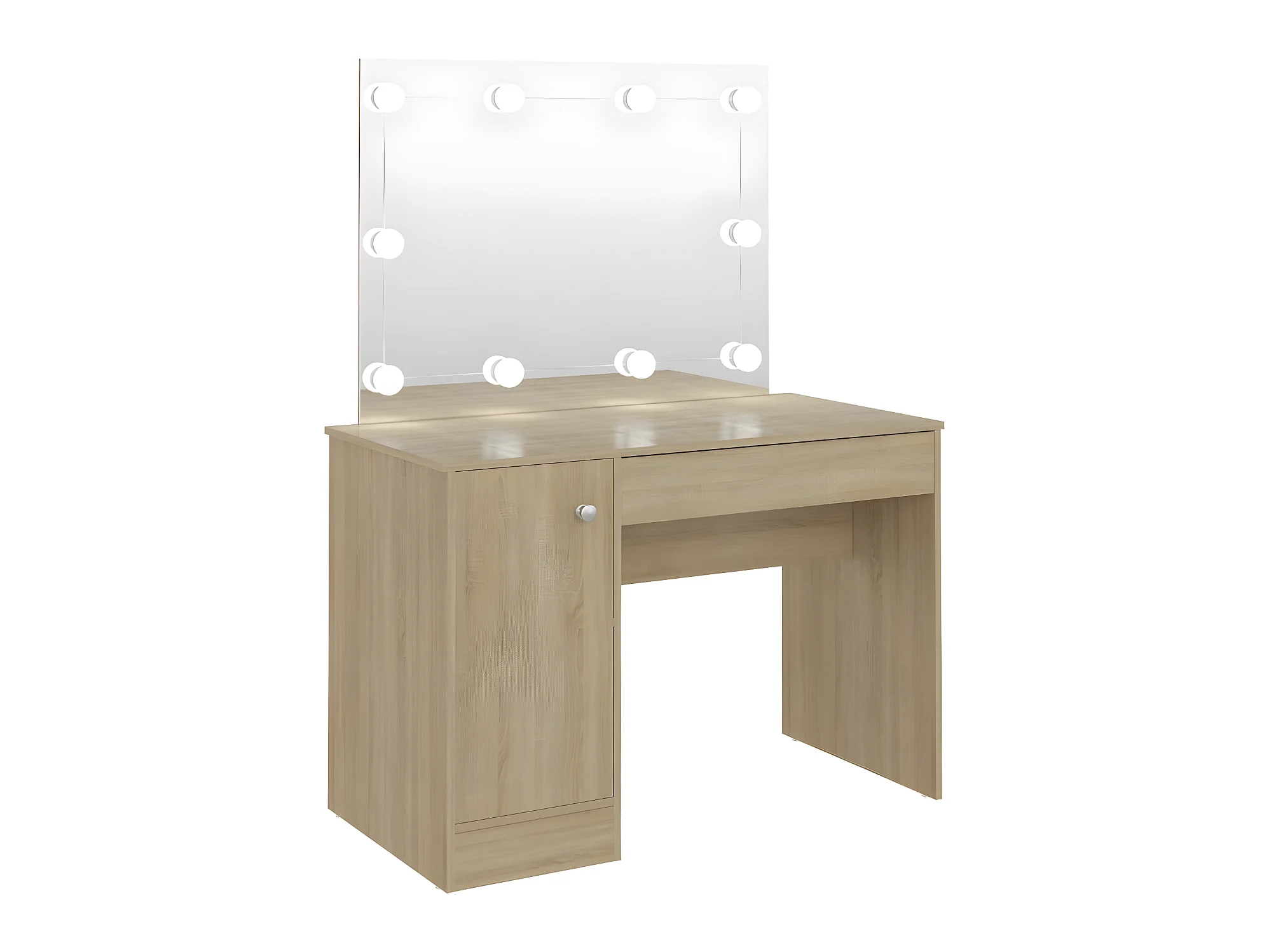 Coiffeuse table de maquillage effet bois beige 110 x 55 x 145 cm 02_0006285