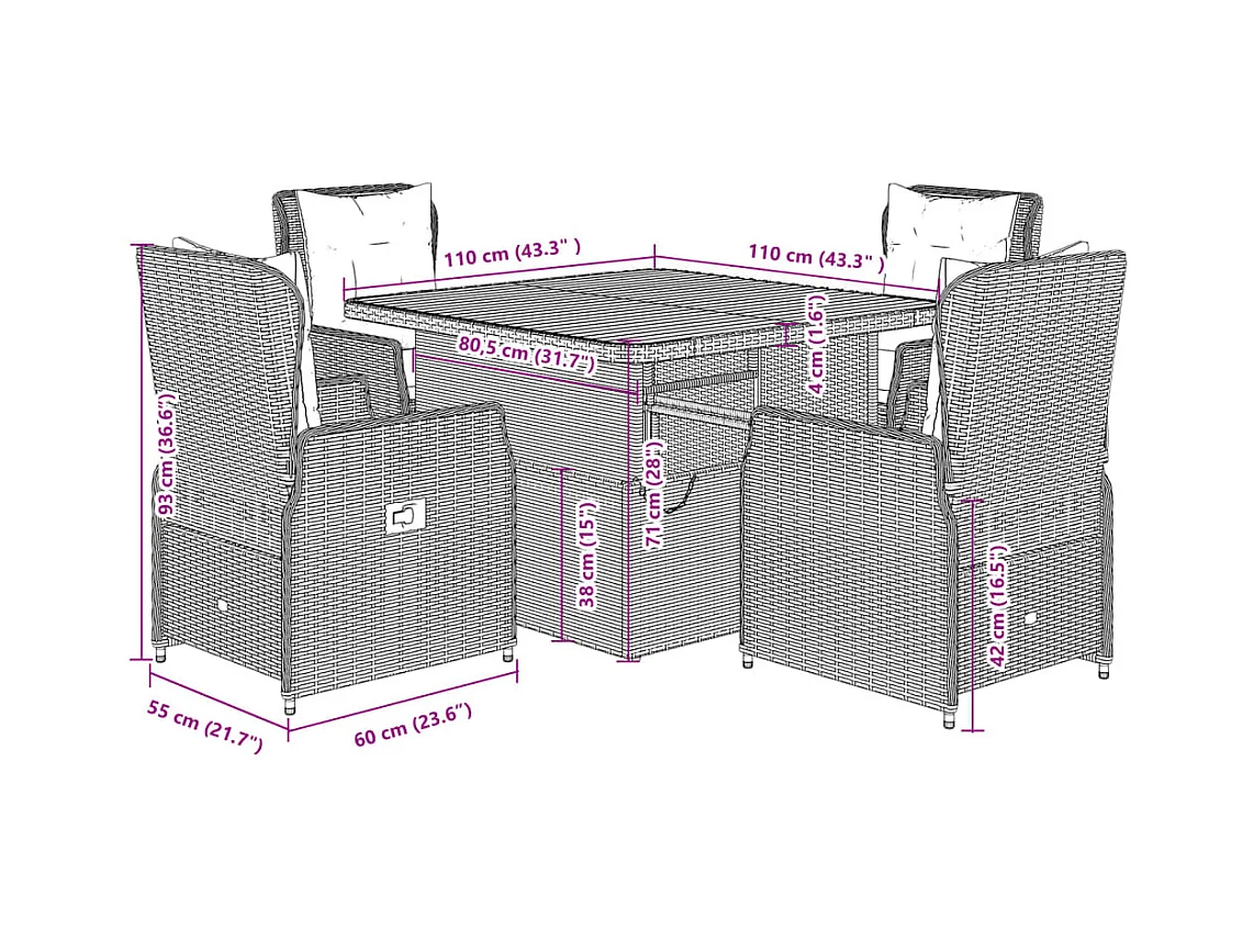 Coleville Ensemble à manger de jardin avec coussins 5pcs Beige poly rotin