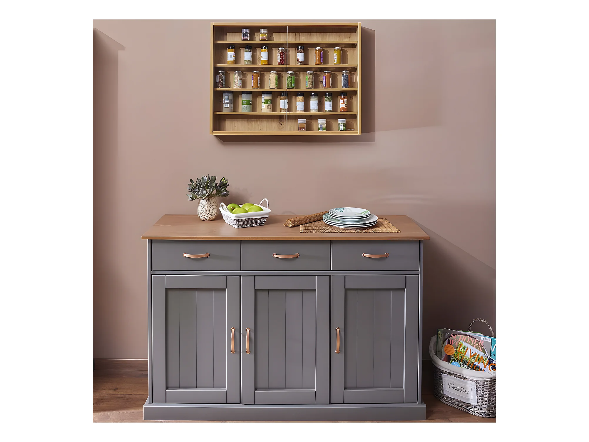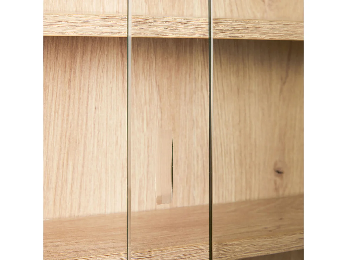 Vitrine 4 portes avec porte vitrée - 112cm - Grège avec façades rainurées - ZANTE