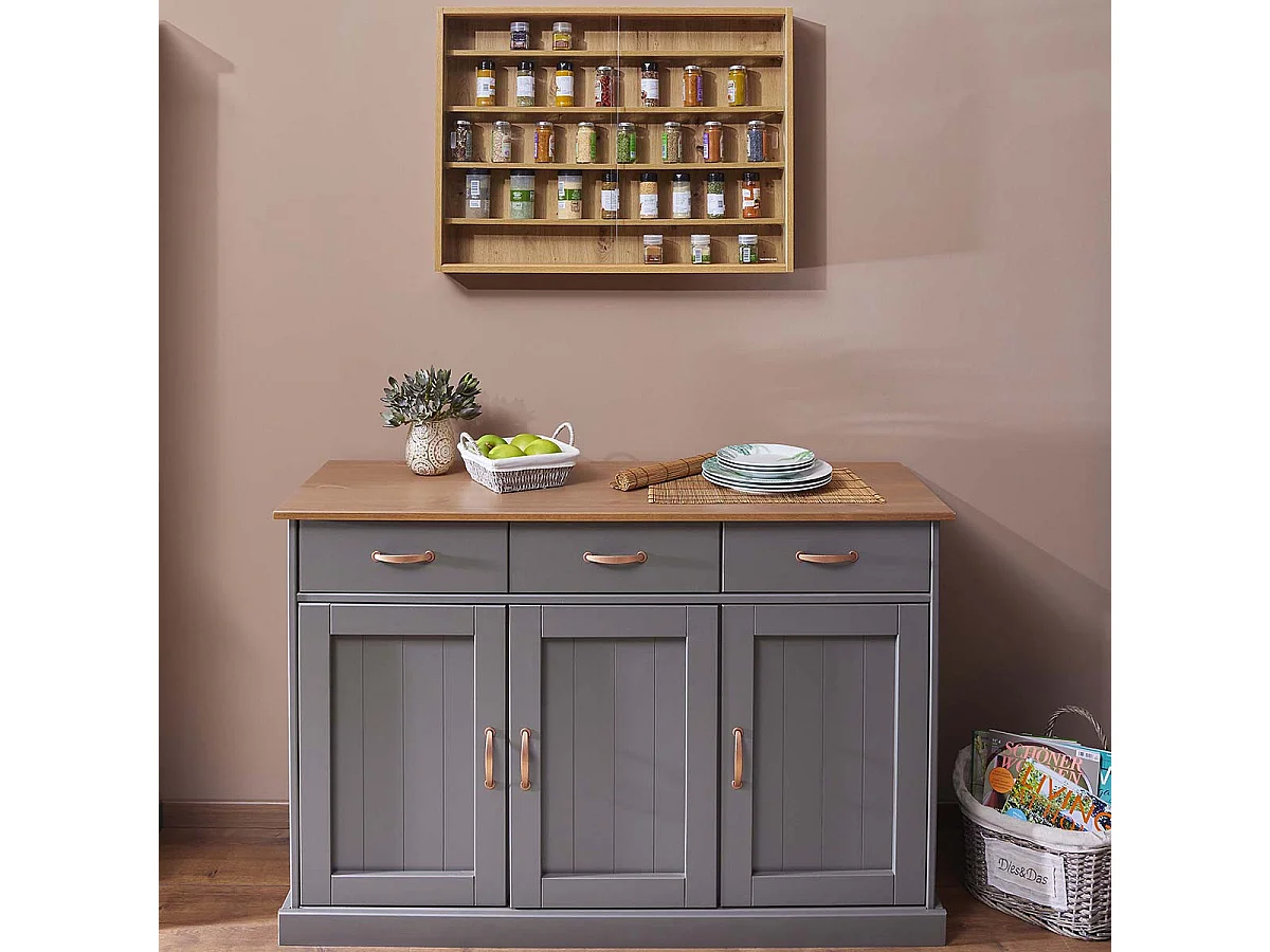 Vitrine aspect chêne wotan et gris anthracite Stik