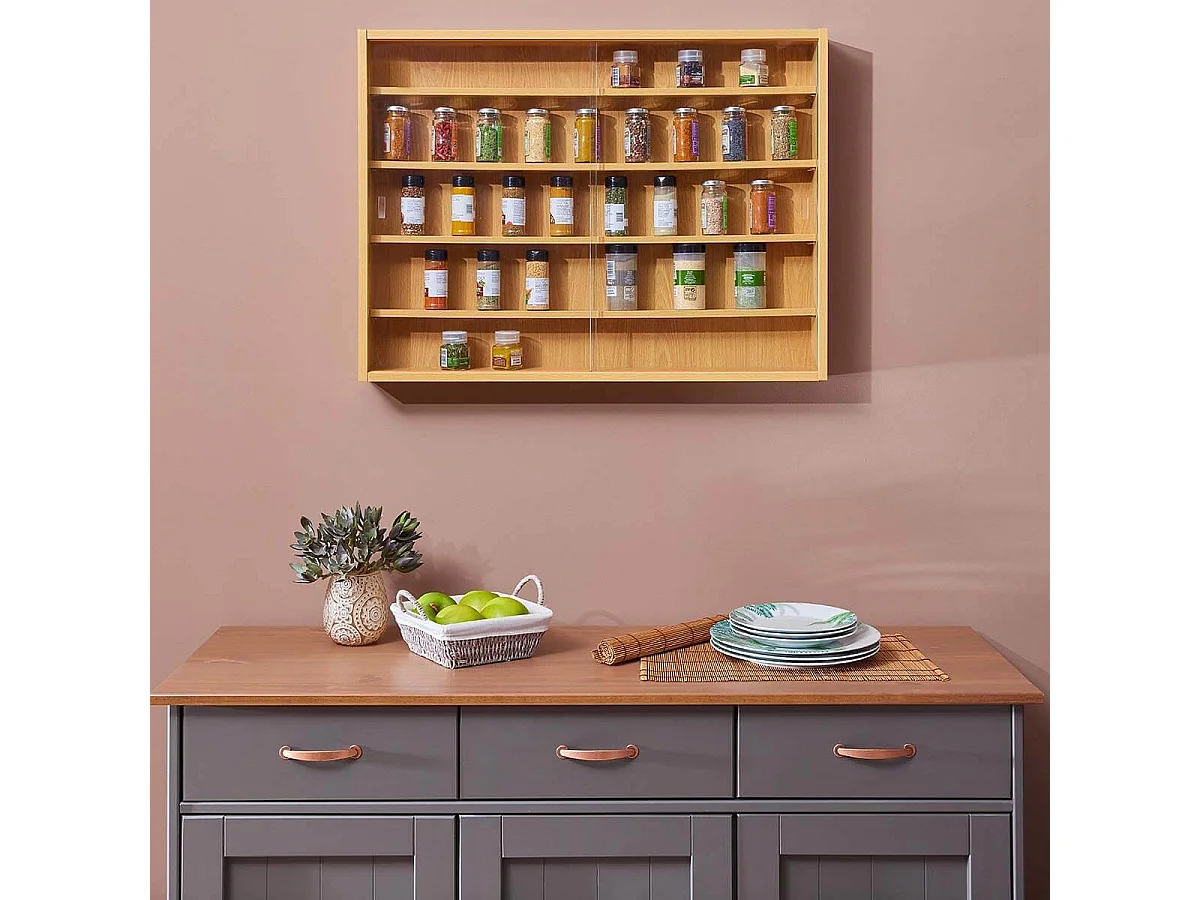 COLLECT - Vitrine Murale 5 Compartiments Aspect Hêtre