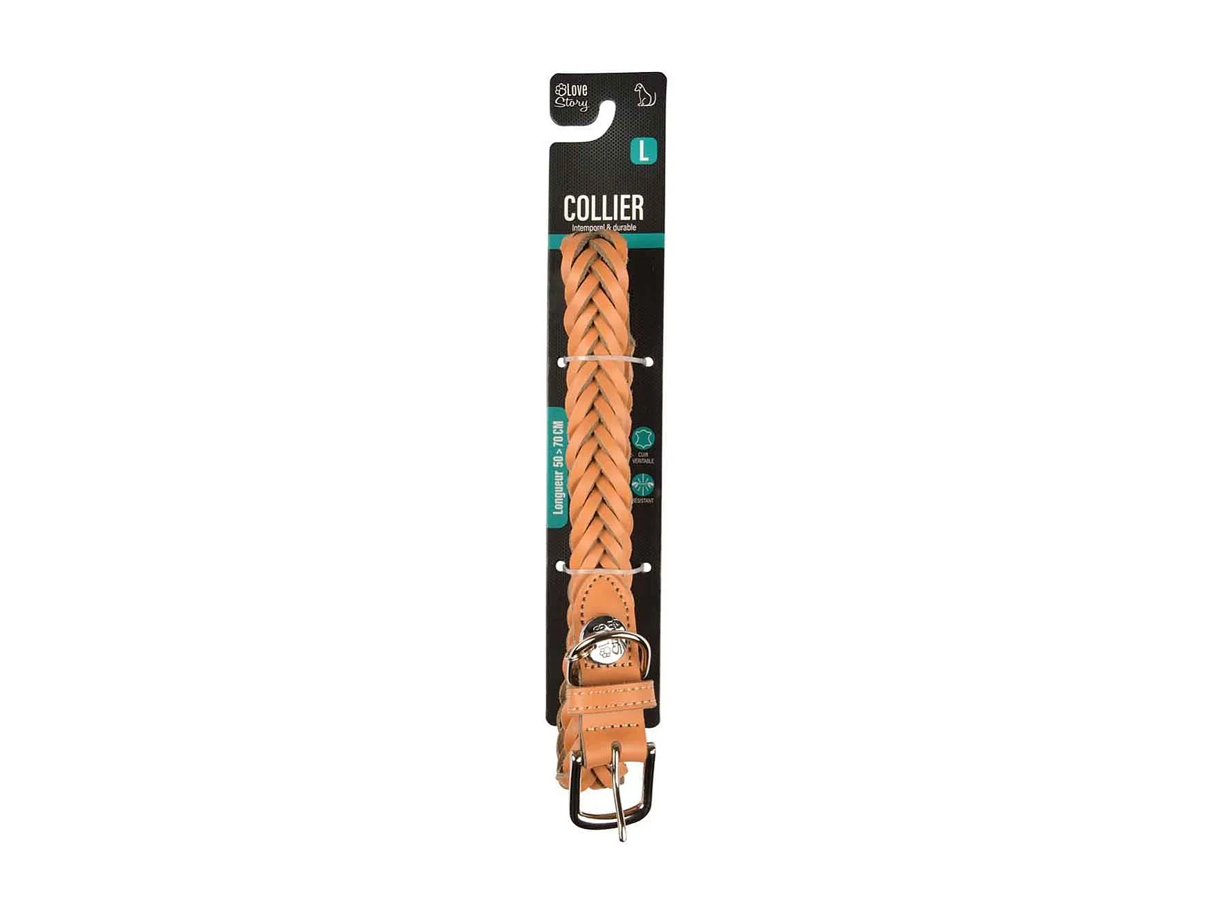Collier pour Chien Réglable "Tressé" 50-70cm Naturel
