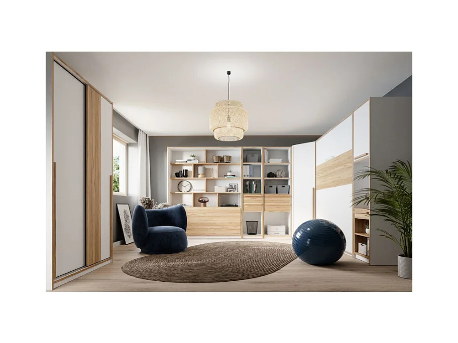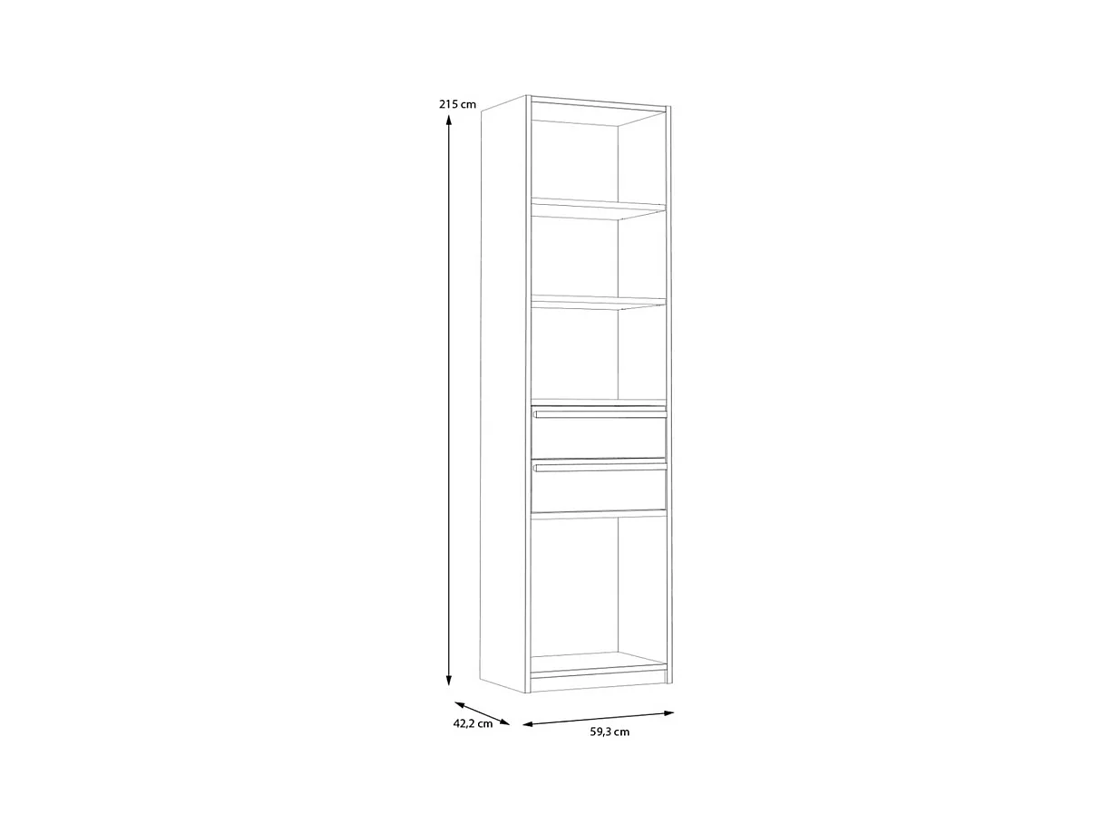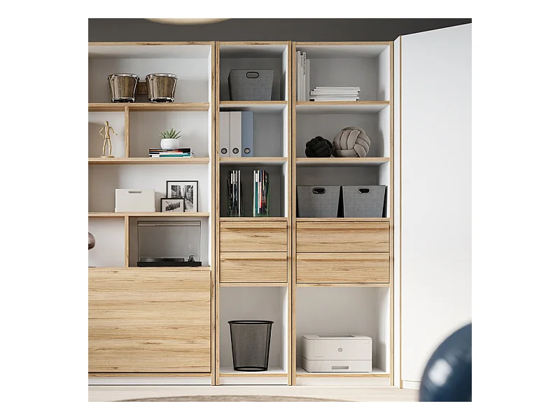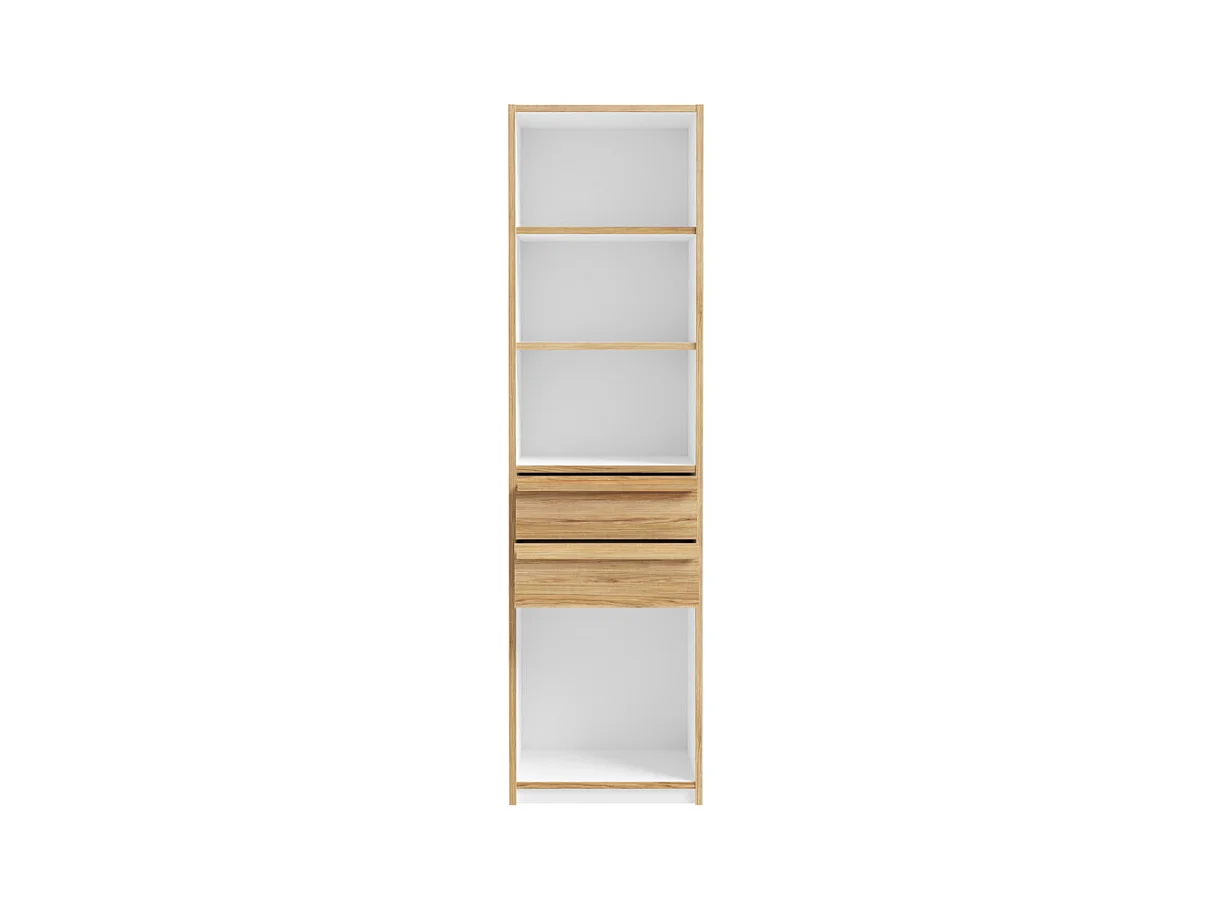 Colonne / Bibliothèque L. 59 cm 2 tiroirs décor blanc et chêne - CONAN