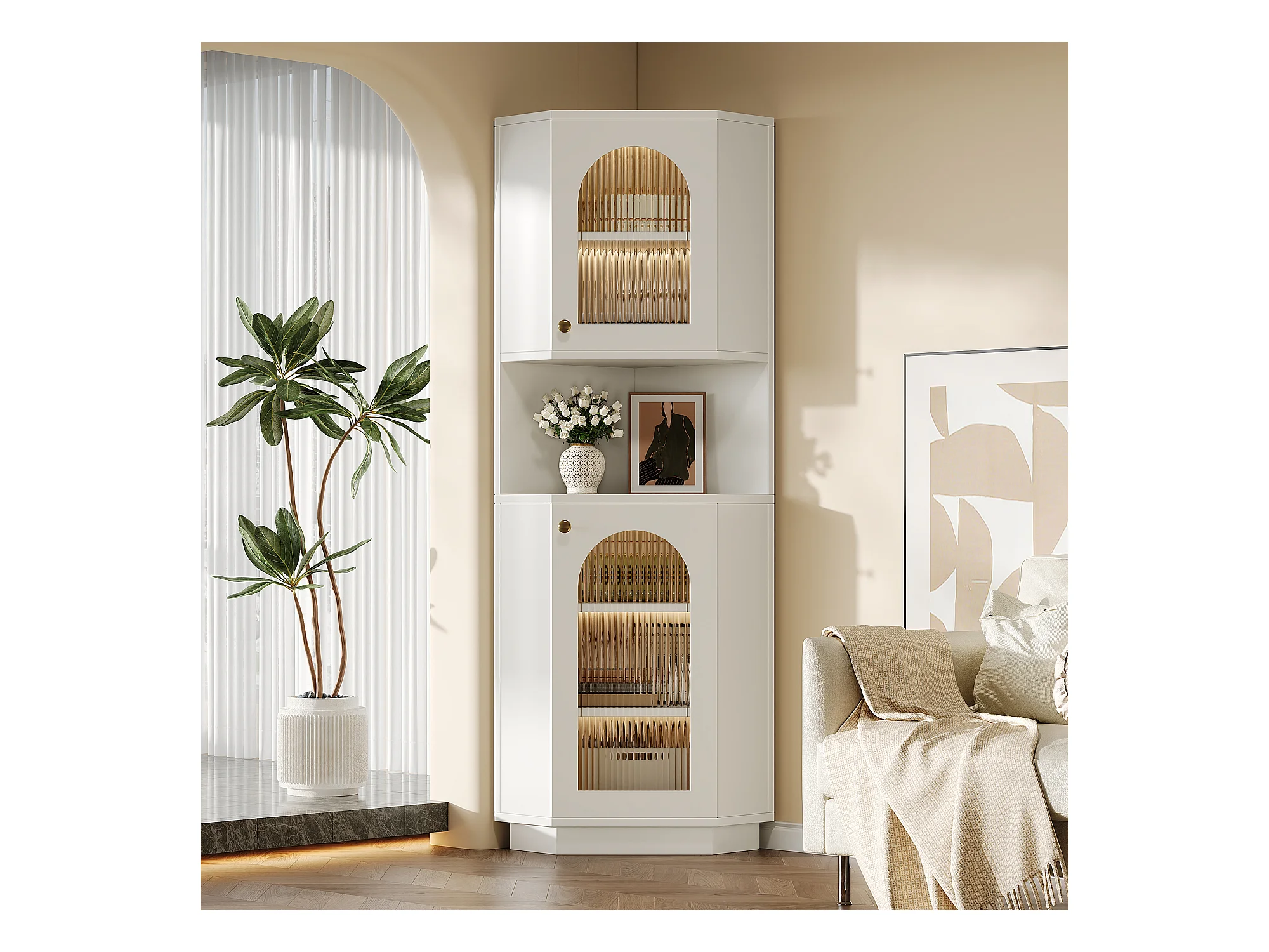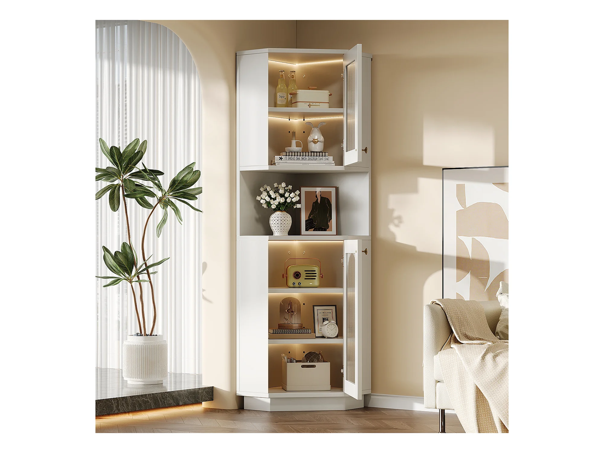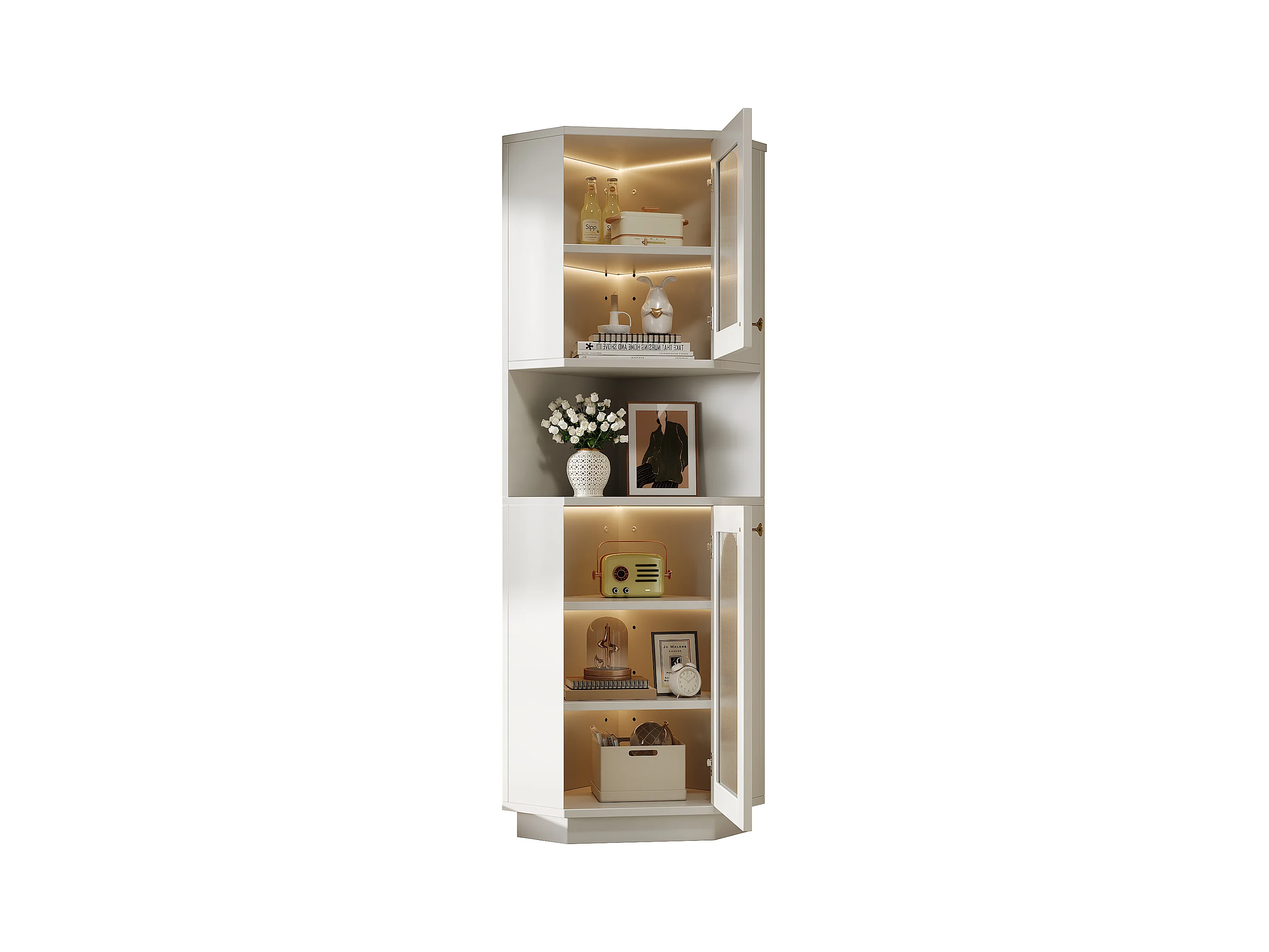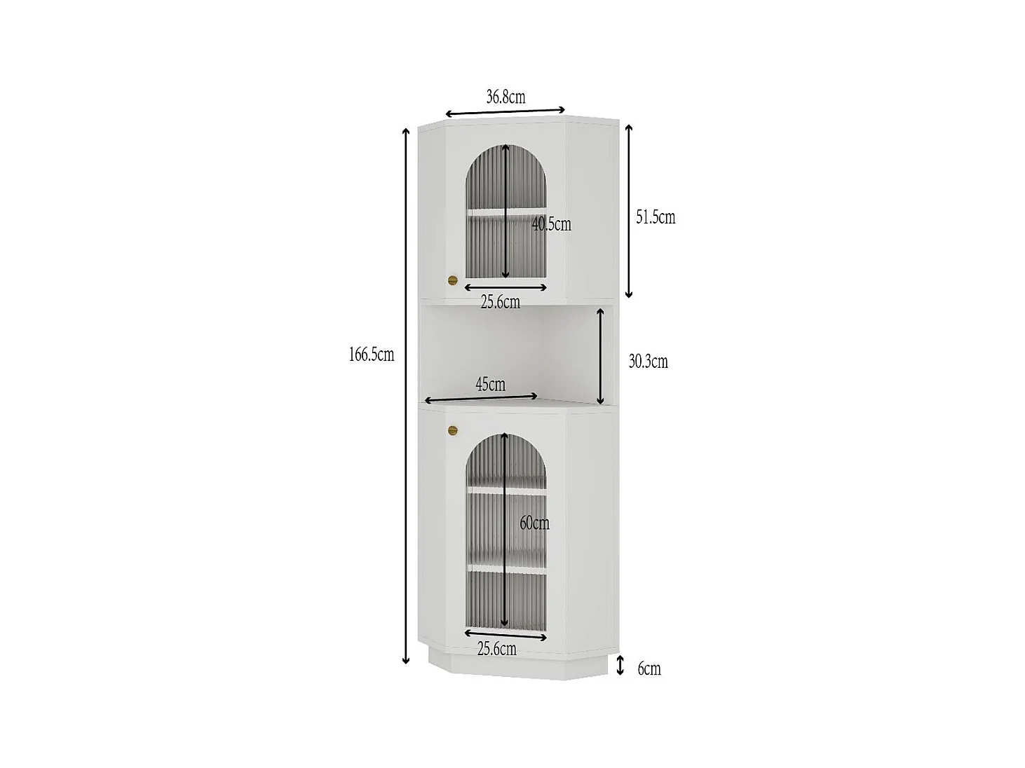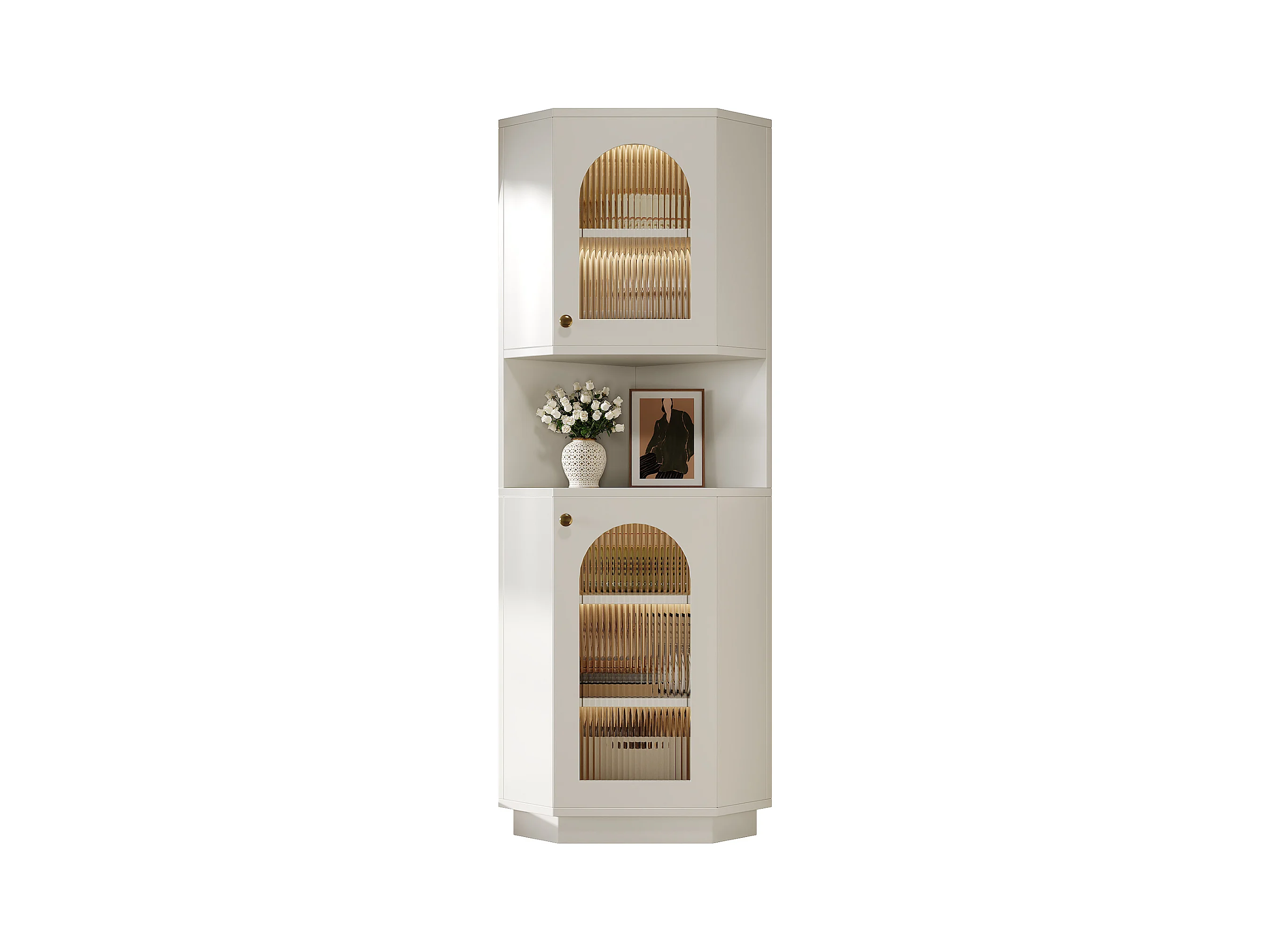 Colonne d'angle de salle de bain - 2 portes et 1 niche de rangement - 45x 45 x 166,5 cm - LEDs - MDF - Blanc