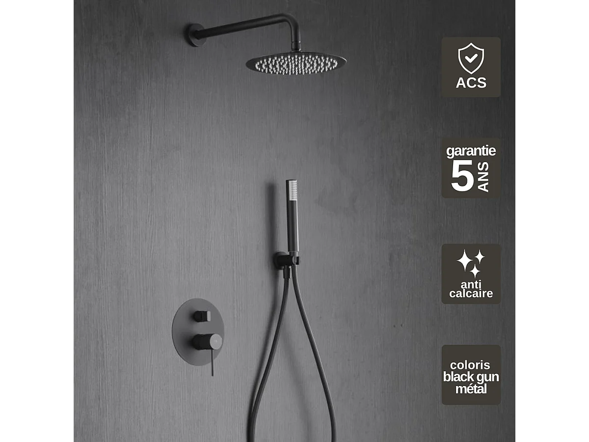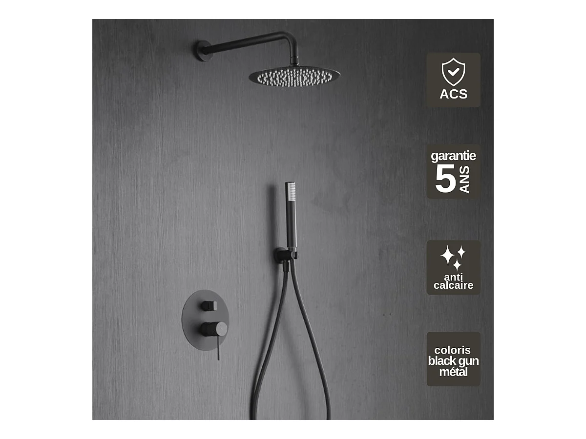 Colonne de Douche Encastrée noir métal anti-calcaire - Design Moderne et Économie d'eau - Kit Complet LINE IMEX