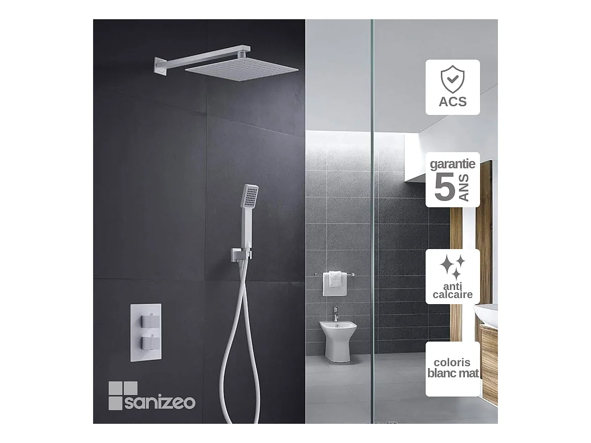 Colonne de Douche Encastrée blanc mat anti-calcaire - Design Moderne et Économie d'eau - Kit Complet CIES IMEX